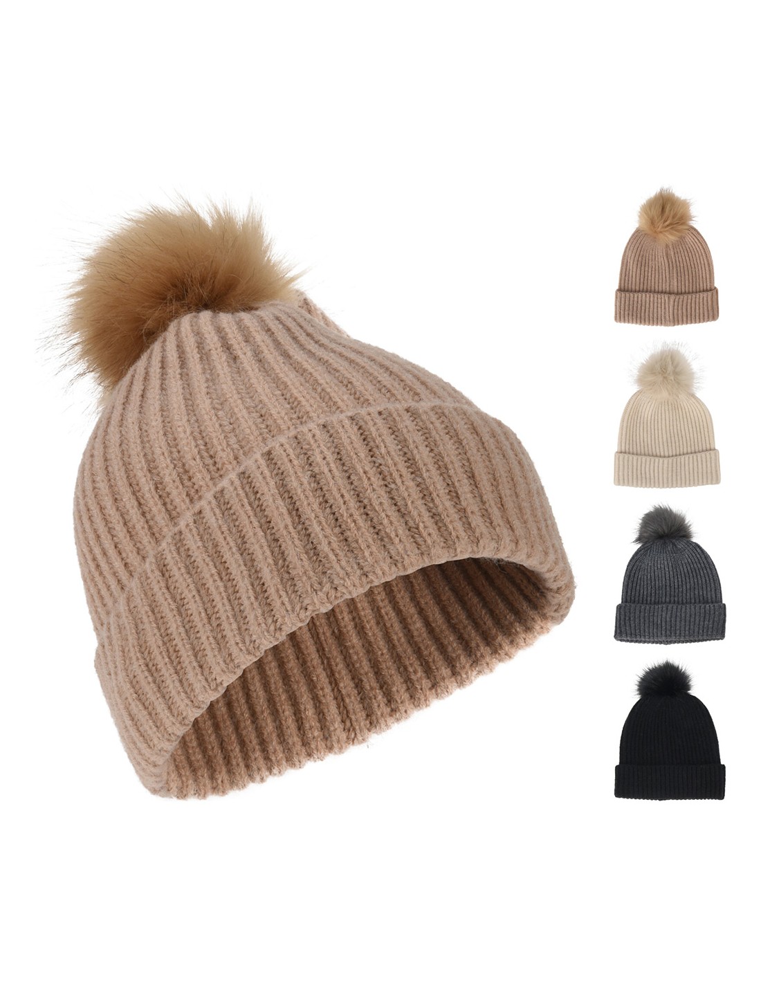 Gorro de punto con borla, colores variados (marron claro, crema, gris y negro). talla única