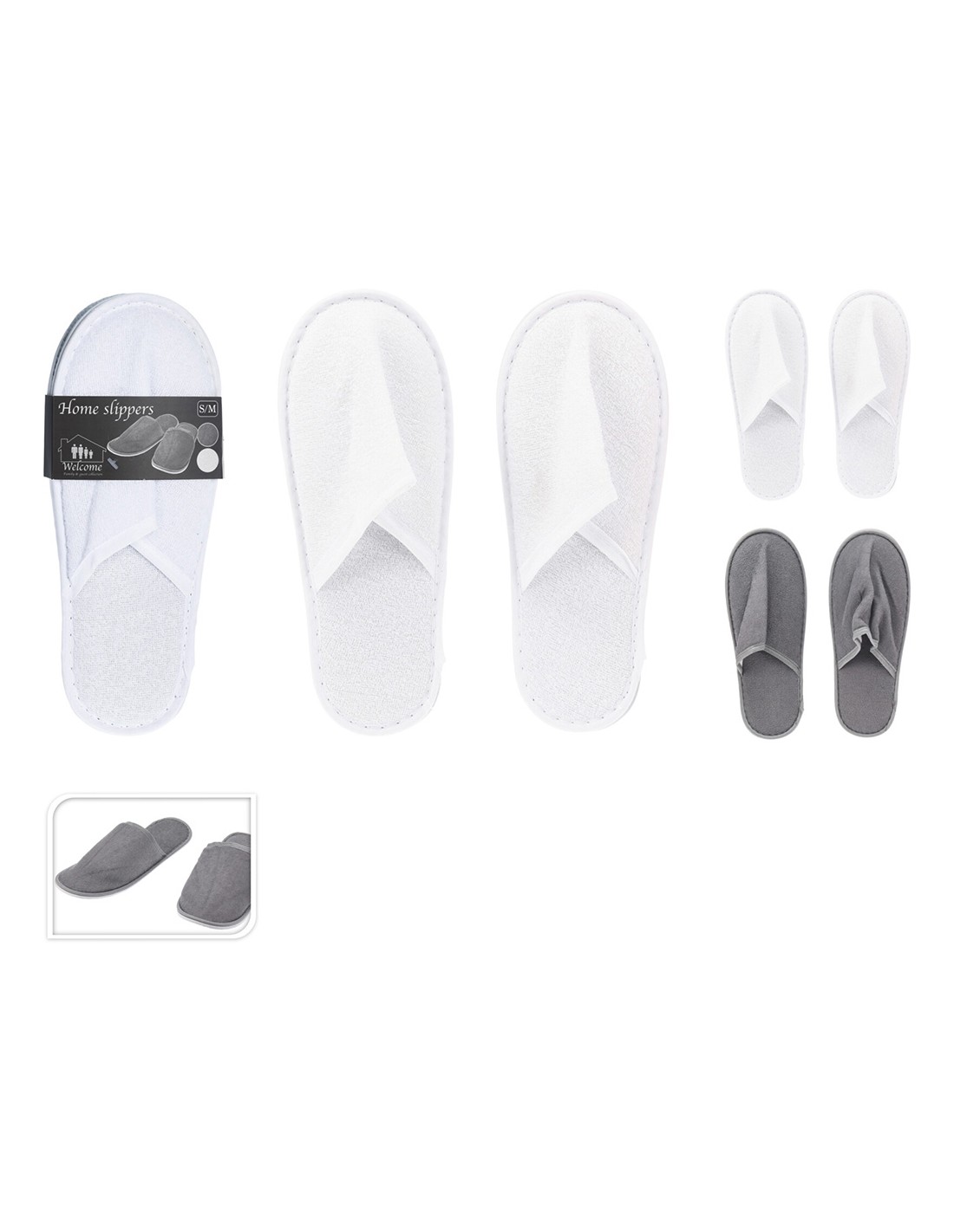 Pantuflas de rizo, blancas/grises, poliester, tallas s/m (medida :25cm) y l/xl (medida: 26,5cm). no se garantiza la disponibilidad de una talla/color en concreto.