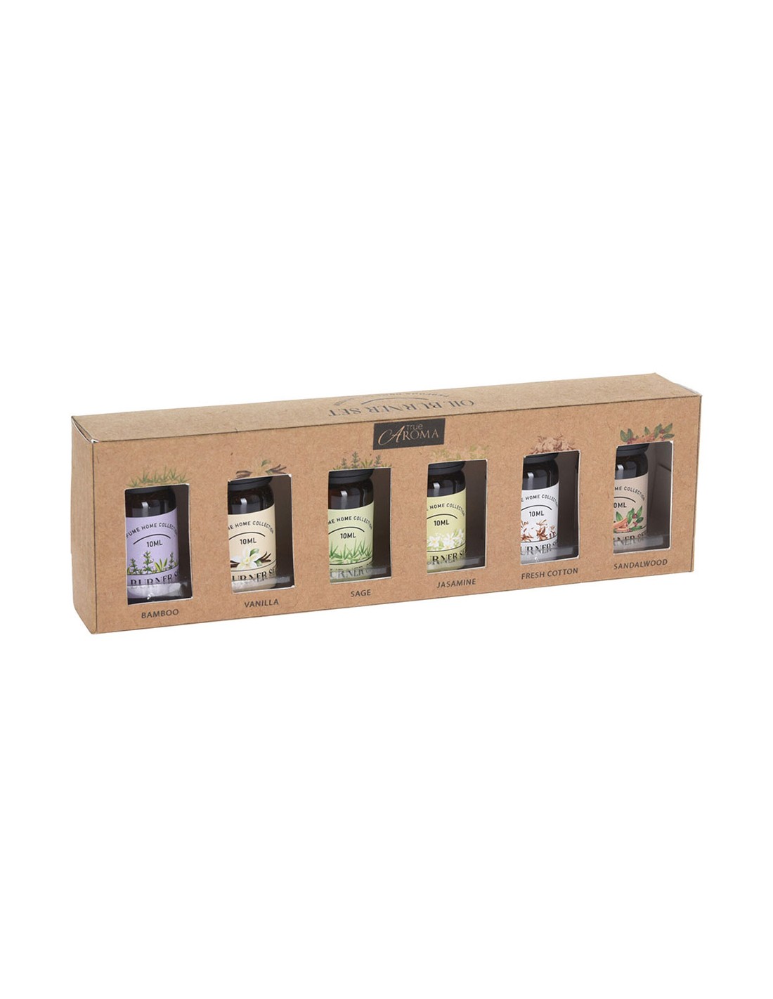 Aceite aromático 6 fragancias diferentes 10 ml, bambú, vainilla, sabia, jazamín, algodón fresco y sándalo