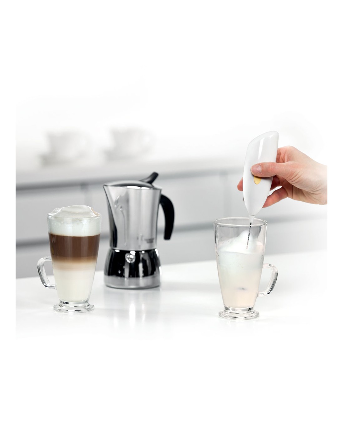 Batidor de leche electrico presto. excelente para una rápida preparación de espuma de leche para cappuccino, café con leche, chocolate, etc. caliente la leche (preferentemente entera/semi-desnatada) a 60°c y viértala en un recipiente alto y estrecho. sumerja el batidor en la leche, enciéndalo y bata hasta que la espuma se espese (entre 15 y 20 segundos) apague el batidor antes de sacarlo del recipiente. limpie el extremo de acero inoxidable con agua corriente. limpie el mango de plástico con un paño húmedo. no apto para lavavajillas. garantía de 3 años. requiere 2 pilas aa (pilas no incluidas). tescoma