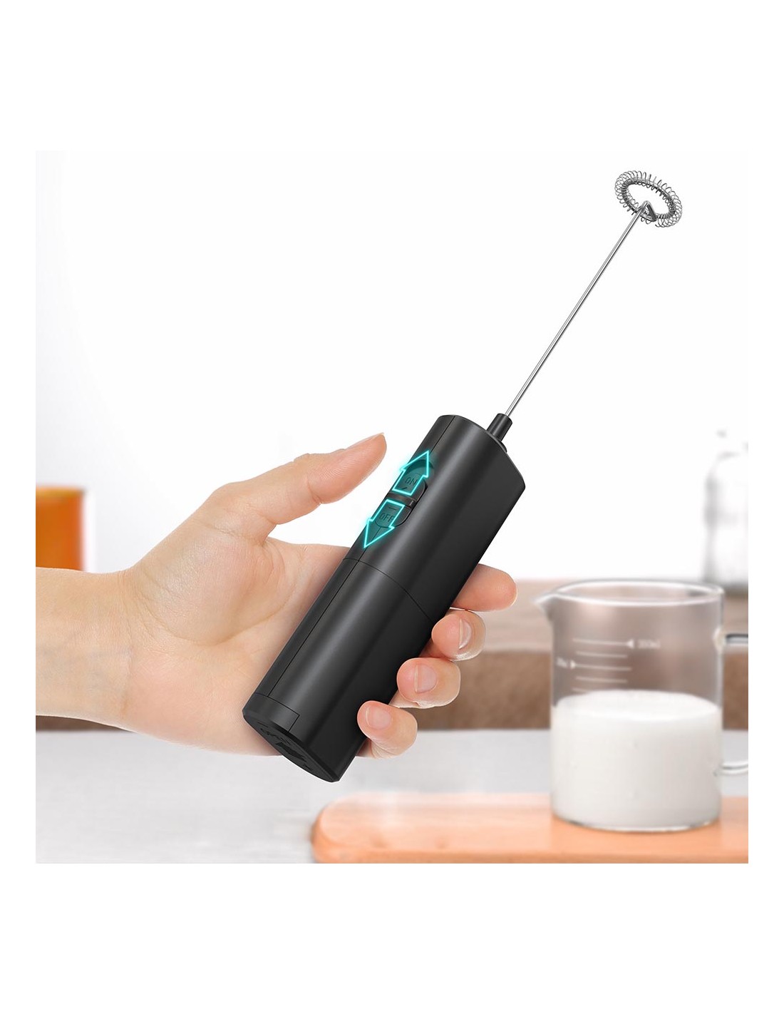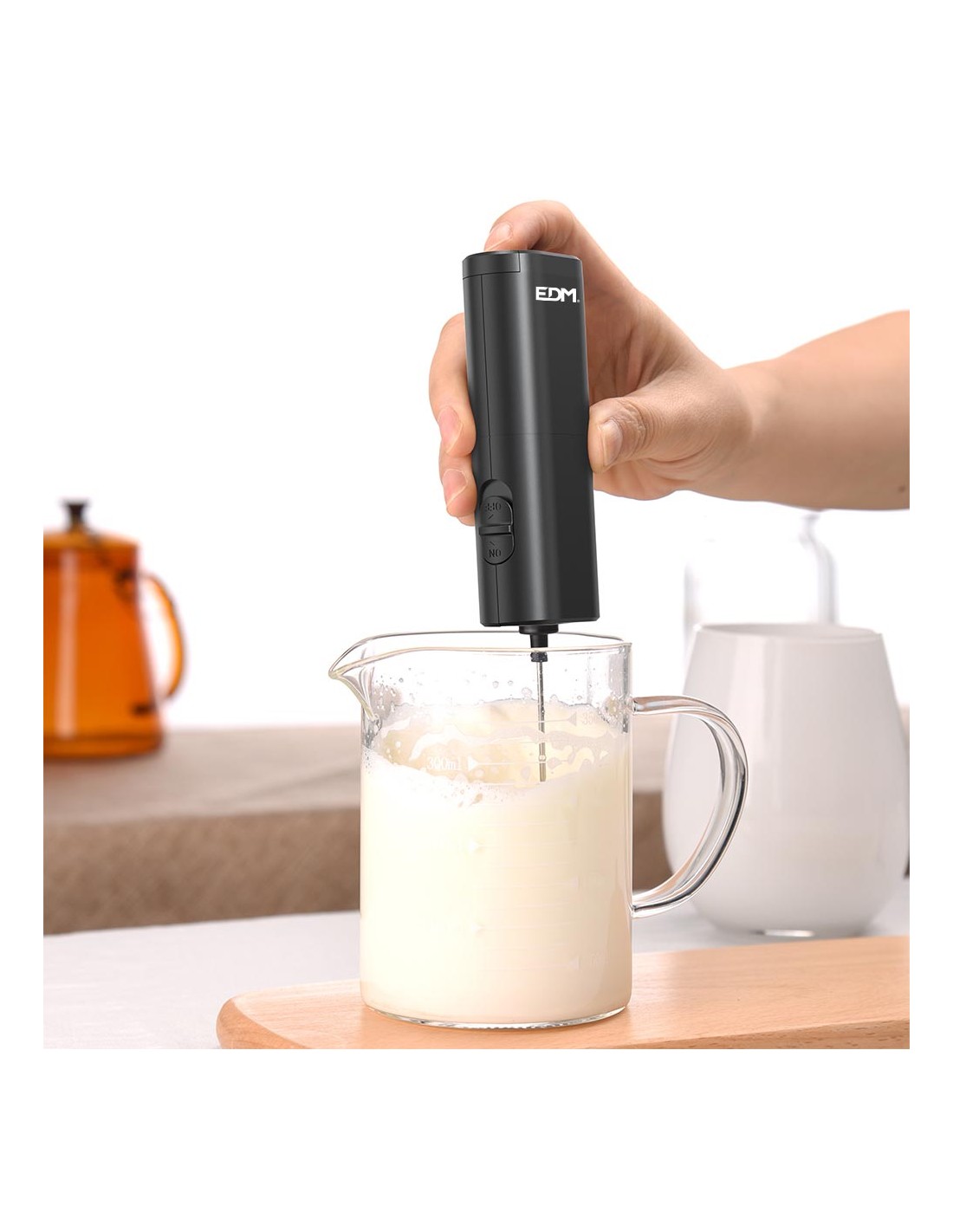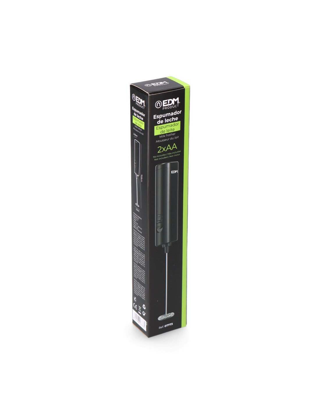 Espumador de leche eléctrico, alimentación 2 pilas aa - 1,5v (no incluidas). motor de alta energia 14000 rpm. tiempo de trabajo máx.3 min. varilla de acero inoxidable 304. no es desmontable. negro. 3,5x2,25x19,8 cm.