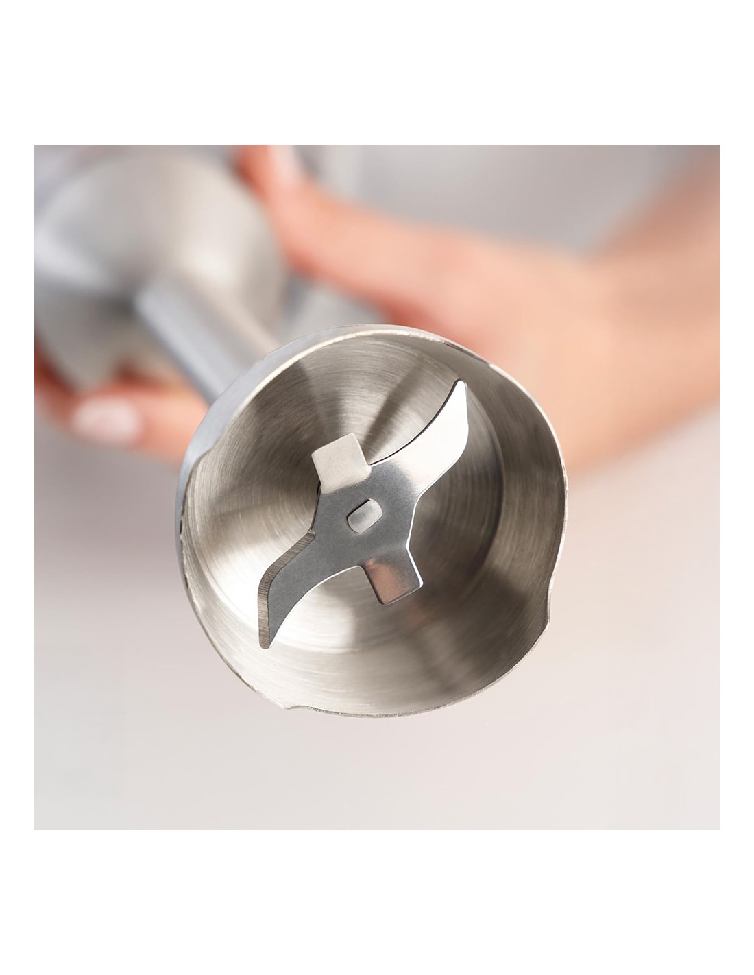 Batidora de mano 1700w con accesorios, 220-240v - 50hz, 2 velocidades y control variable, carcasa y varilla de acero inoxidable, brazo desmontable (4 cuchillas, 2 cortas + 2 largas) vaso medidor 600 ml, picadora 500 ml (2 cuchillas) . ø6,5 x 41 cm, mango ergonómico.