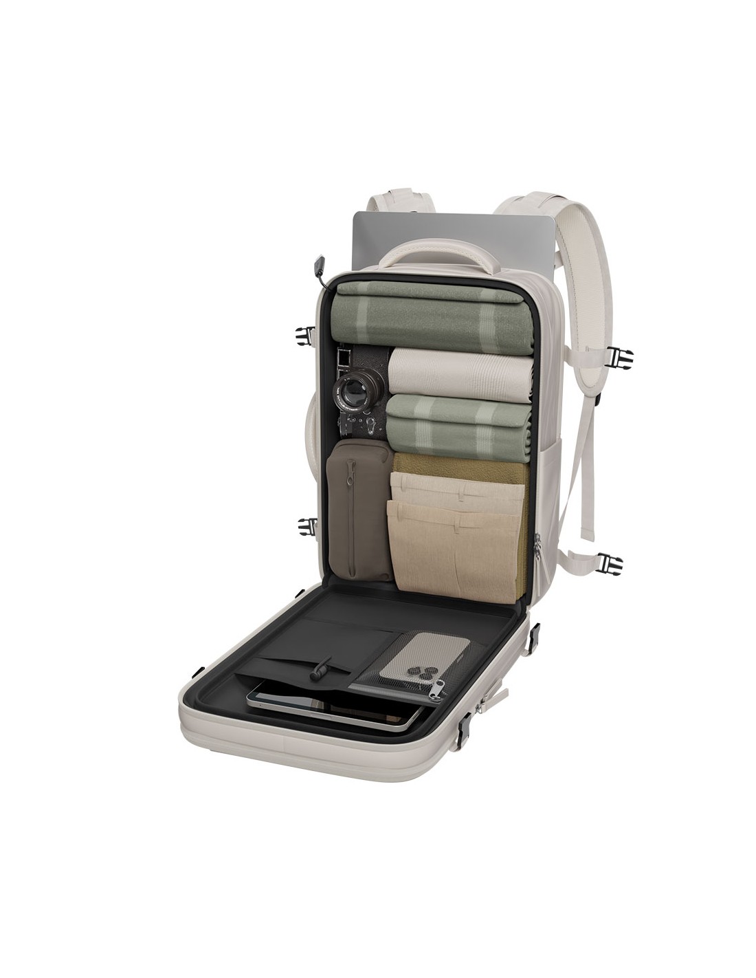 Mochila de viaje explorer backpack apta para cabina avión 40 x 20 x 25 cm (20l) con 13 compartimentos, espacios separados para portátil 15", zapatero y zona para líquidos. bolsillo antirrobo y puerto de carga exterior usb, doble asa de transporte, cintas de apriete, espalda ergonómica con tirantes anchos y acolchados y banda trasera. material de polyester impermeable.
