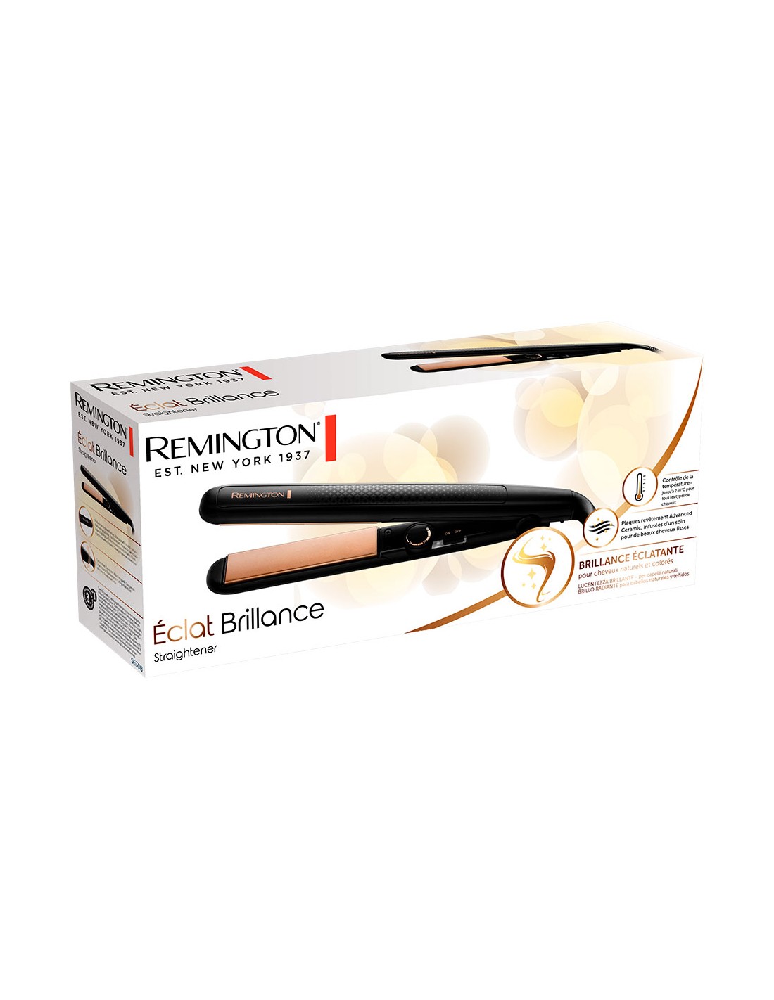 Plancha de cabello eclat brillance. modelo: s6308. cerámica. turmalina iónica. ahora con titanio. 8 ajustes de temperatura (150 - 230 °c). selector giratorio de temperatura. indicador led de encendido/apagado. calentamiento rápido en 15 segundos. placas flotantes que reducen la presión. placas más largas de 110 mm. bloqueo de placa para que sea más fácil de guardar. cable giratorio. apagado automático de seguridad después de 60 minutos. funda de viaje resistente al calor. dimensiones: 29,5 x 3 x 3,5 cm color negro, placas doradas