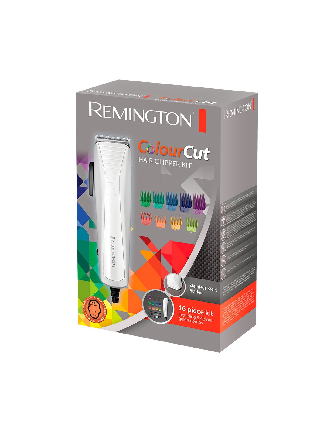 Maquina corta cabellos pro power. modelo: hc 5035. 9 peines de colores que facilitan la selección de la longitud (de 1,5 a 25 mm). cuchillas de acero inoxidable. cuchillas autoafilables. peines especiales para la zona de las orejas. palanca de selección (0,5 - 2 mm). funciona con cable. incluye cepillo para la limpieza. cepillo para el cuello. tijeras. peine. dimensiones: 14,7x 7,9 x 22,6 cm