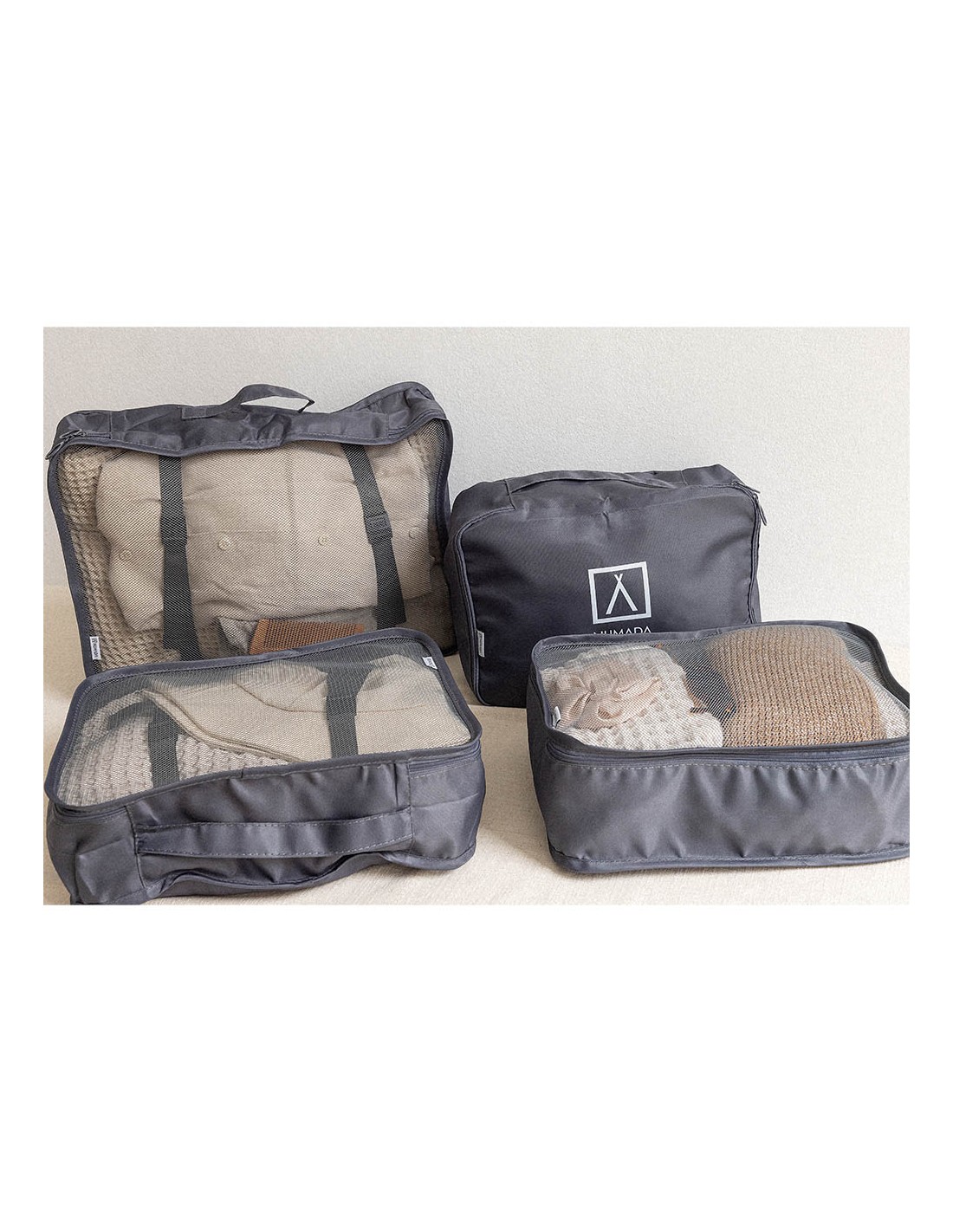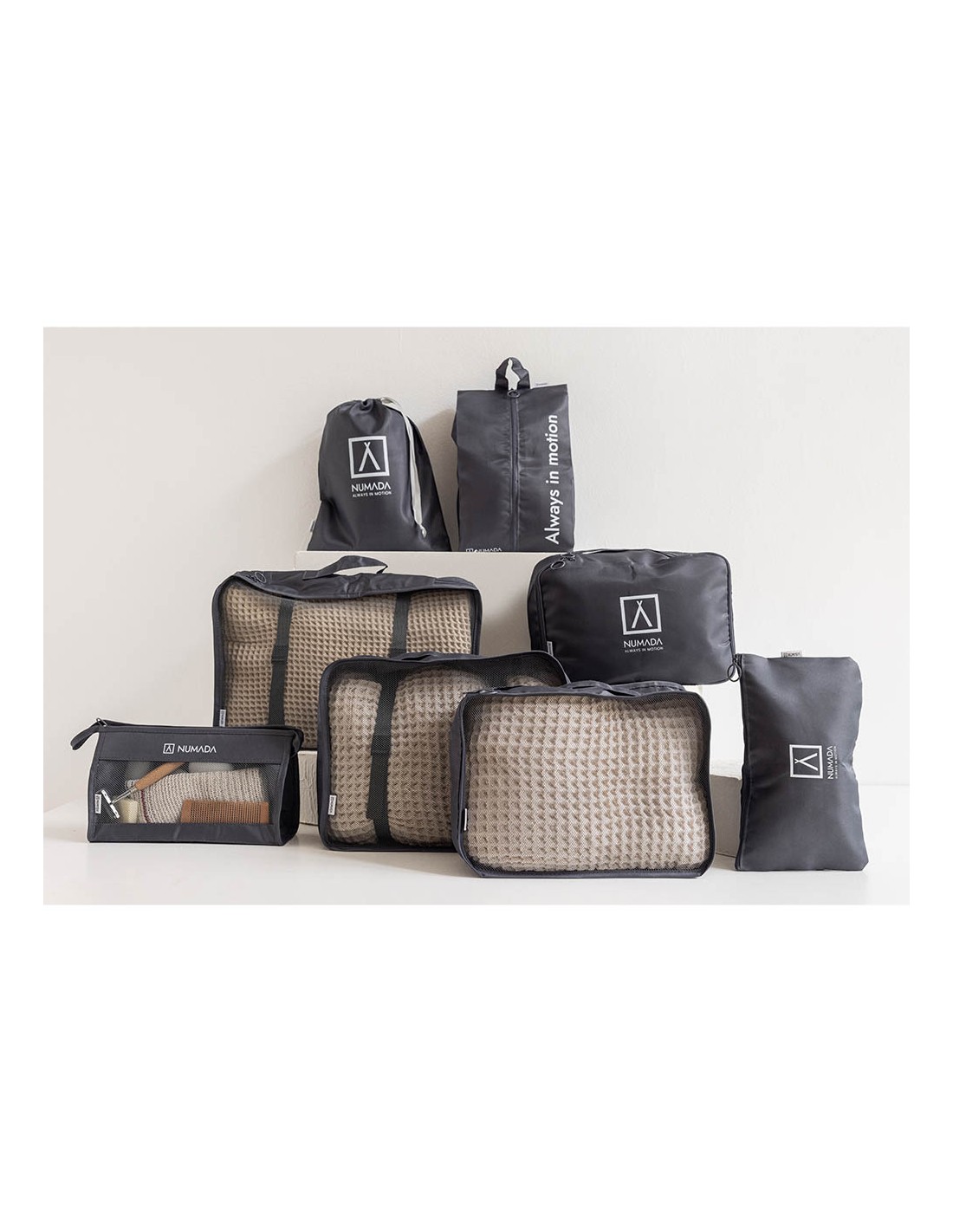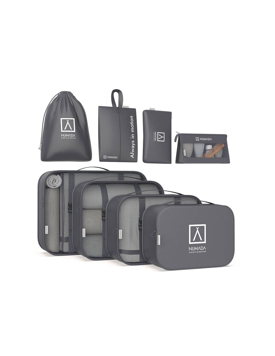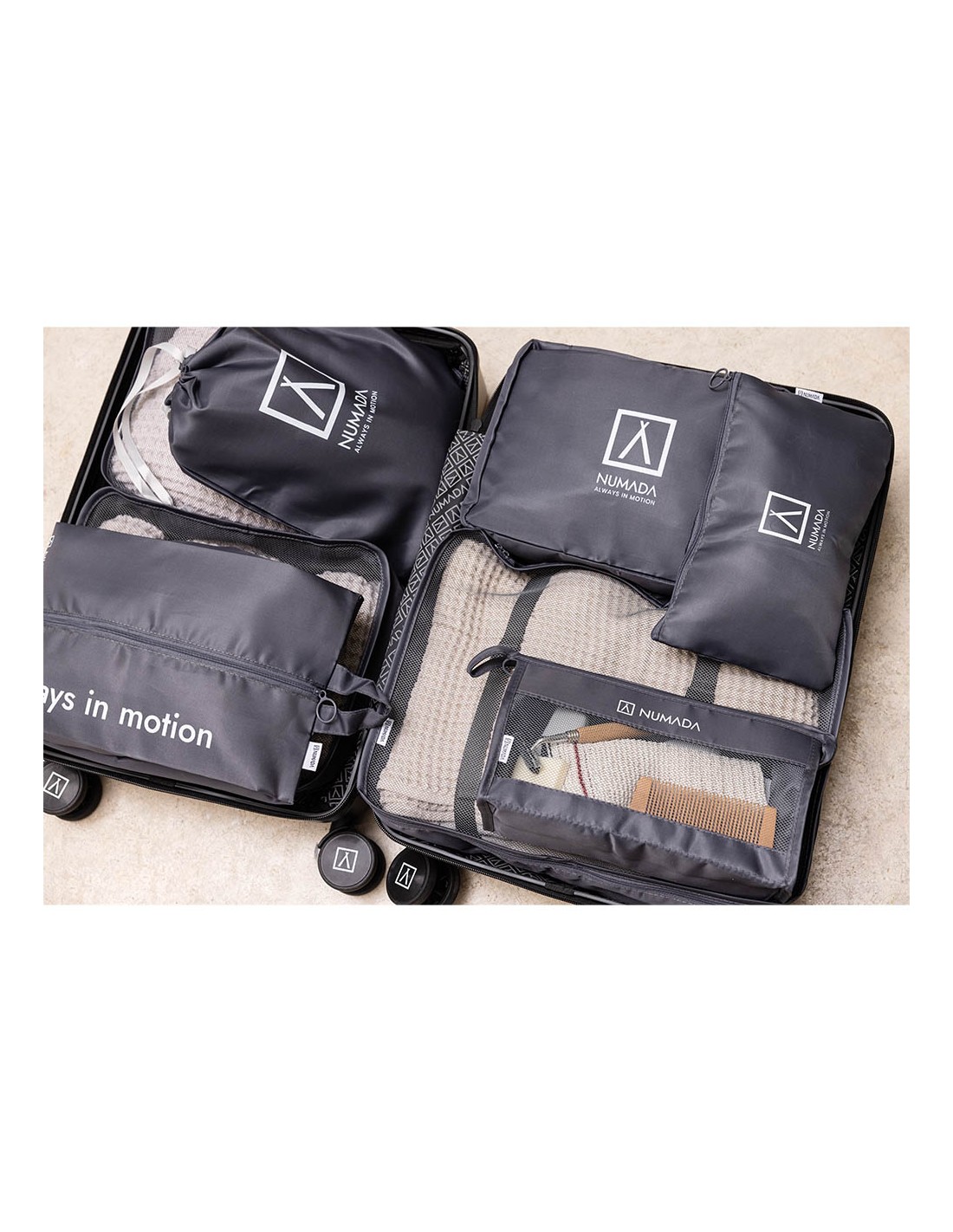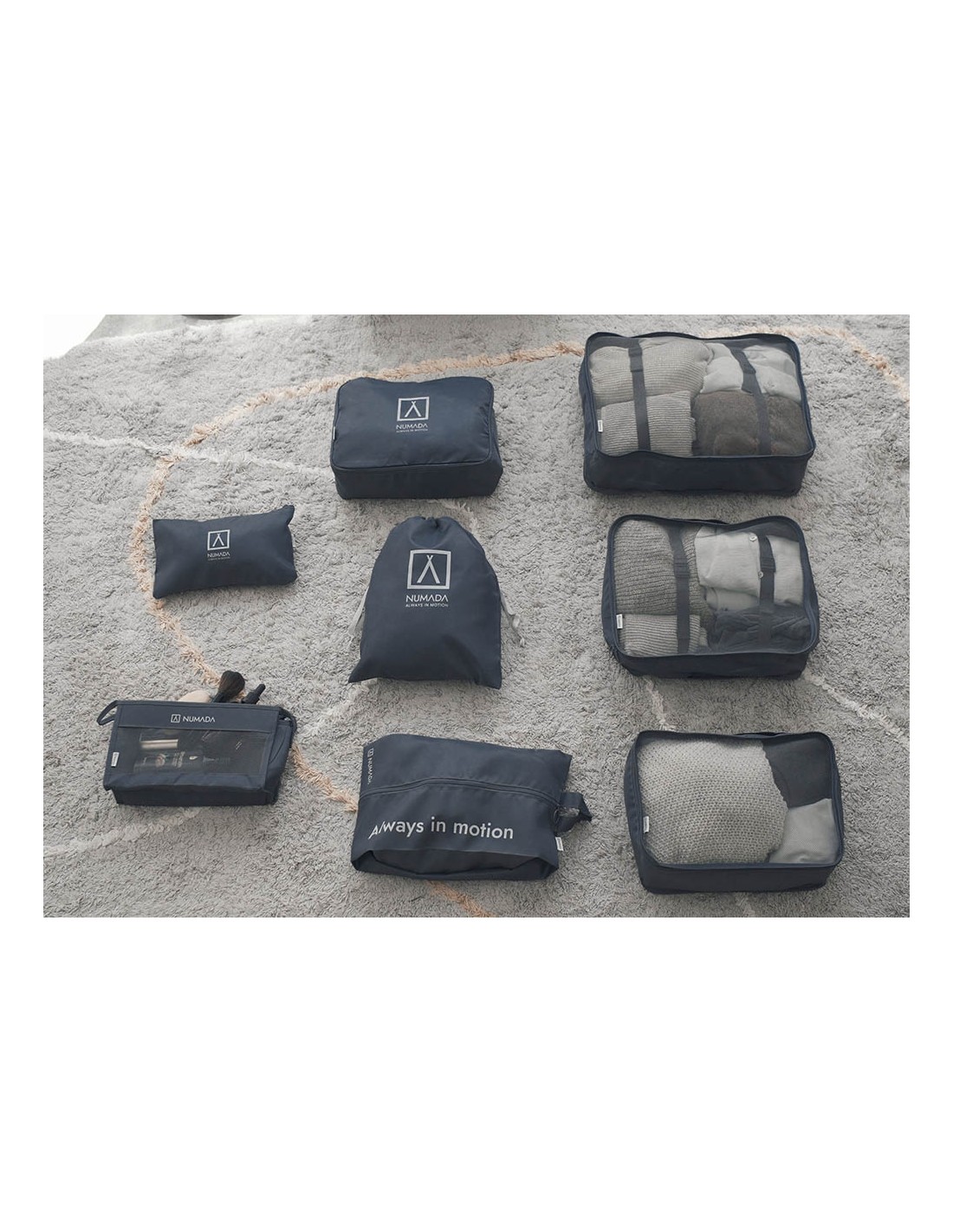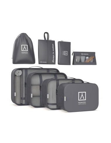 Set de 8 organizadores de maleta para ahorrar espacio. caracteristicas: material impermeable, multiusos y ligeros, con cremallera de doble cursor y rejilla de visibilidad. color: gris oscuro