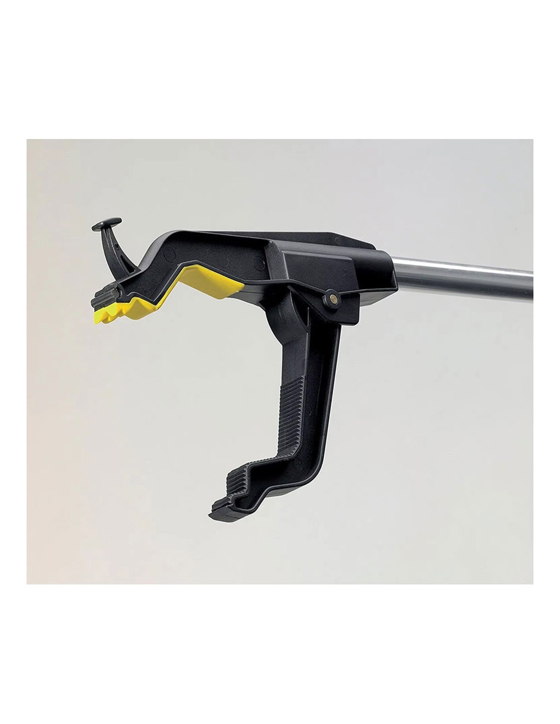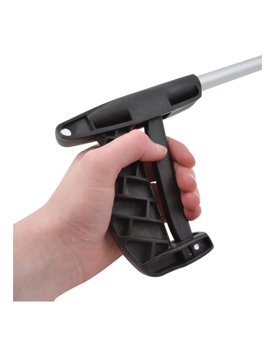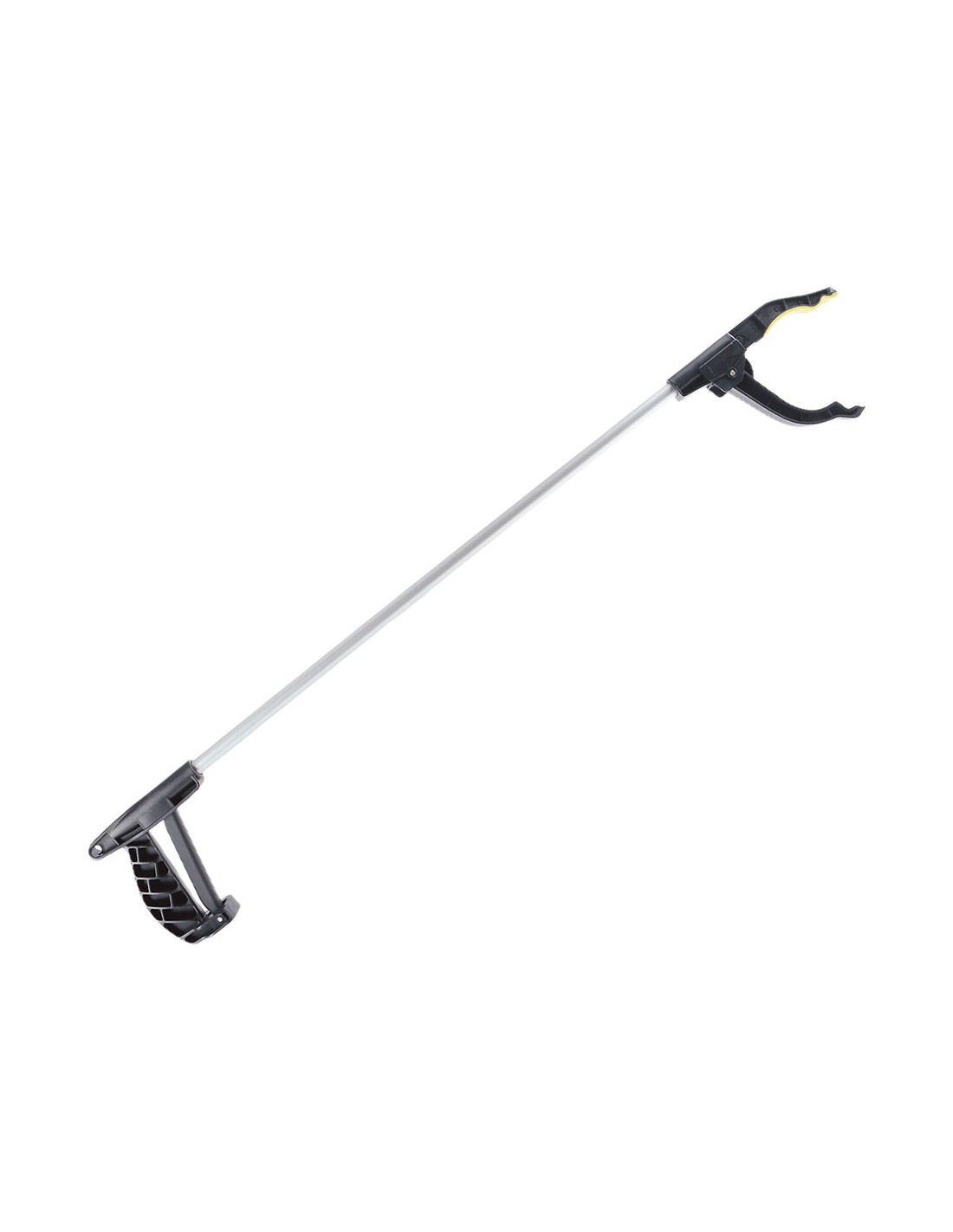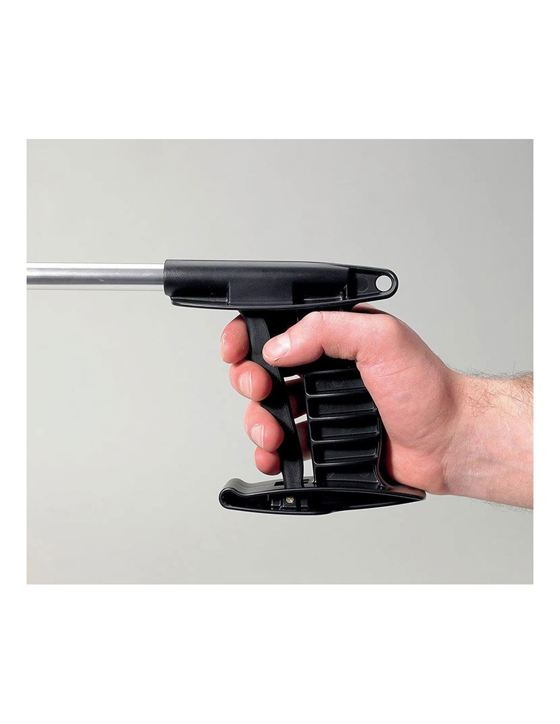 Pinza recoge objetos, material aluminio y pp. color negro y plateado. sistema de sujeción mediante presión, imantado, no es extensible. carga máxima 1 kg. medidas 76 x 12,5 cm