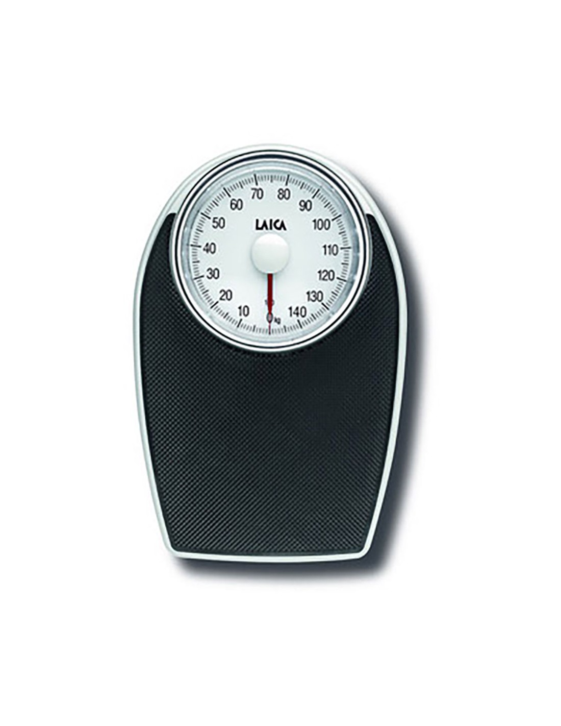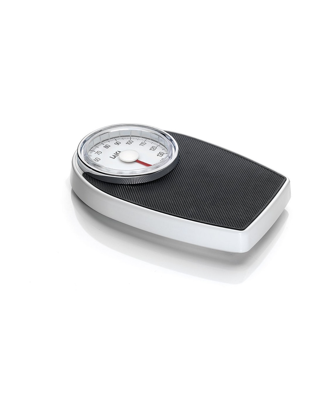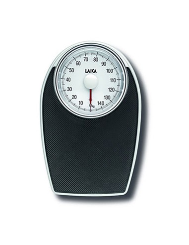Báscula de baño analógica de acero con superficie antideslizante, color blanco / negro. máximo 150 kg