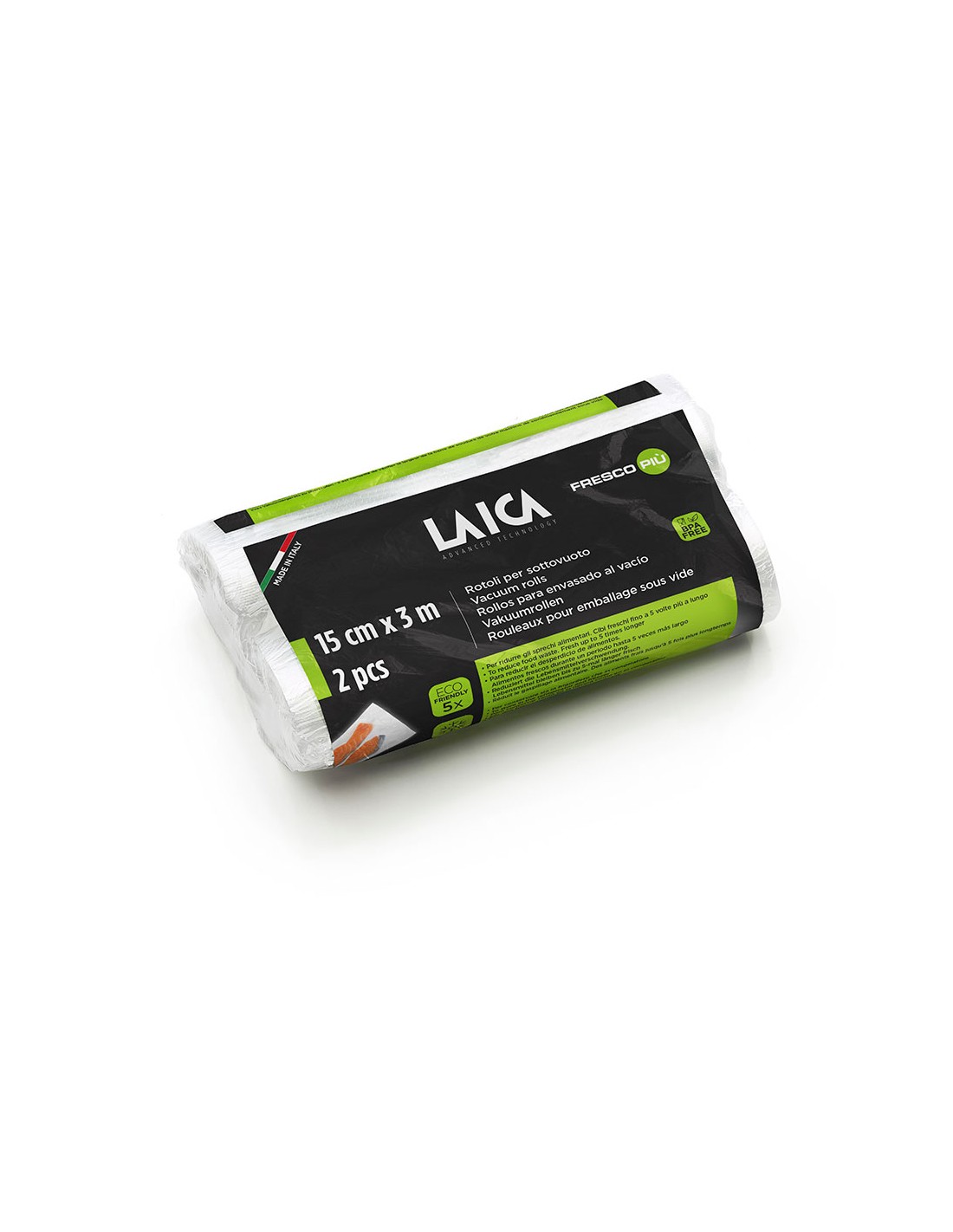 2 rollos de plástico gofrado especialmente testadas para la utilización con las máquinas de vacio en la conservación de alimentos, libres de bpa. es universal. temperatura +10c, +30c, humedad 40% -60%. 15 x 300 cm
