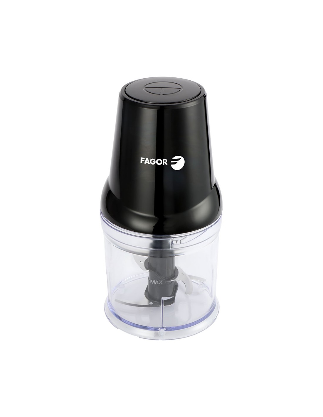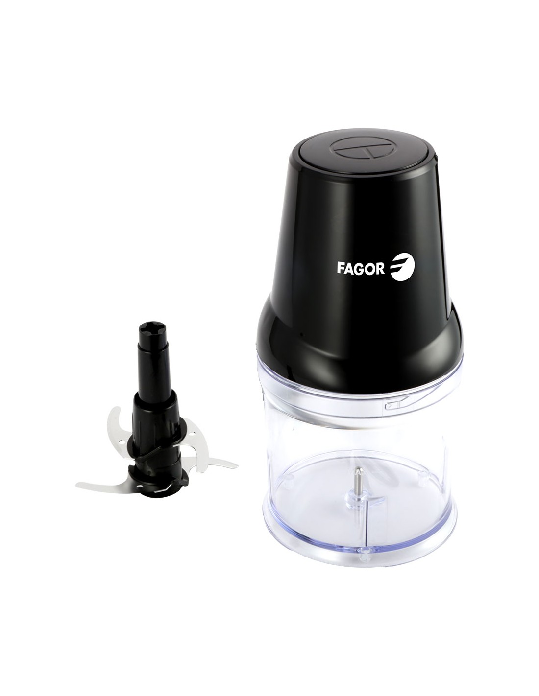 Picadora con potencia de 400 w y voltaje de 220-240 v / 50-60 hz. capacidad del recipiente de 0.5 l. cuerpo de plástico resistente con cuchilla doble de acero inoxidable desmontable que no retiene comida ni genera olores. incorpora una velocidad de funcionamiento