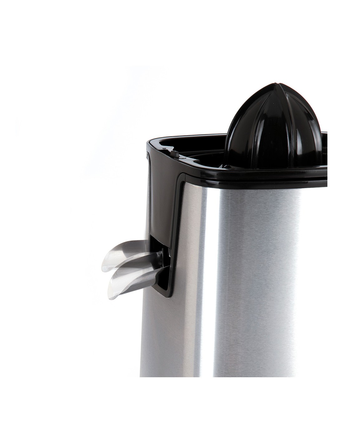 Exprimidor con cuerpo y vertedor en acero inoxidable. motor profesional ac. alta velocidad de extracción del zumo. extracción continua. sistema antigoteo. filtro con regulador de pulpa. incorpora dos conos para conseguir la máxima eficacia. desmontable para su fácil limpieza. base antideslizante. tapa transparente. voltaje 230 v. potencia 350 w