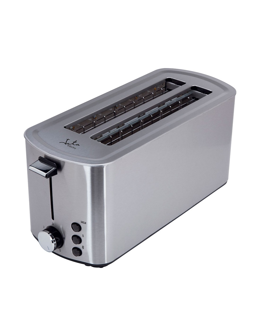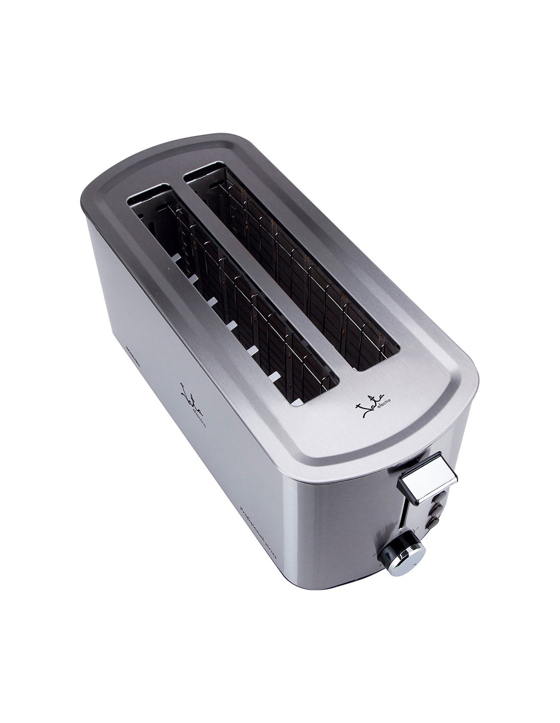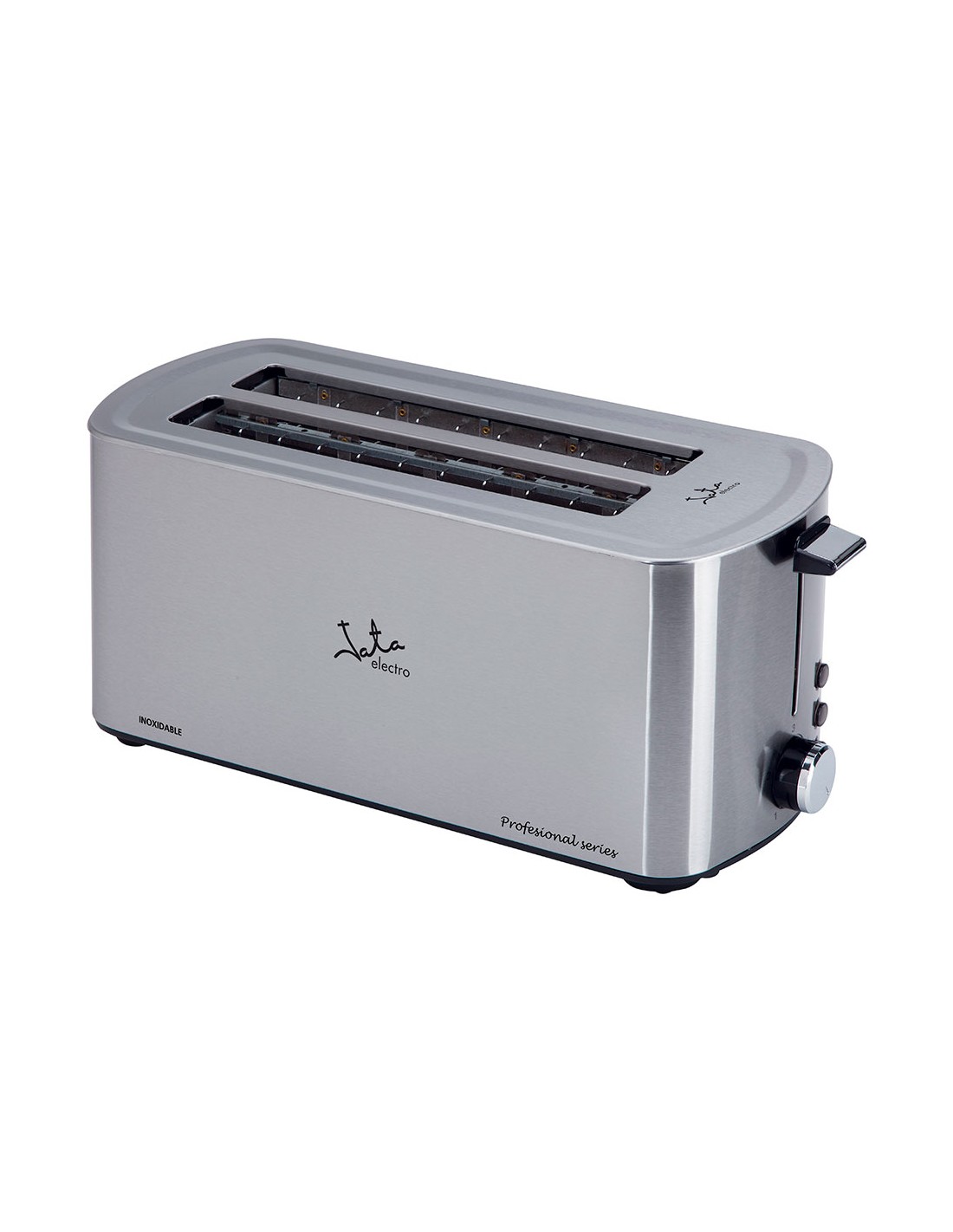 Tostador con cuerpo en acero inoxidable. dos ranuras de 40 x 255 mm. centrado automático del pan. selector electrónico de tostado. 5 posiciones. 2 funciones: descongelación y mantenimiento de calor. pulsador de parada voluntaria. bandeja recogemigas. indicadores luminosos y recogecable. voltaje 230 v. potencia max. 1.400 w