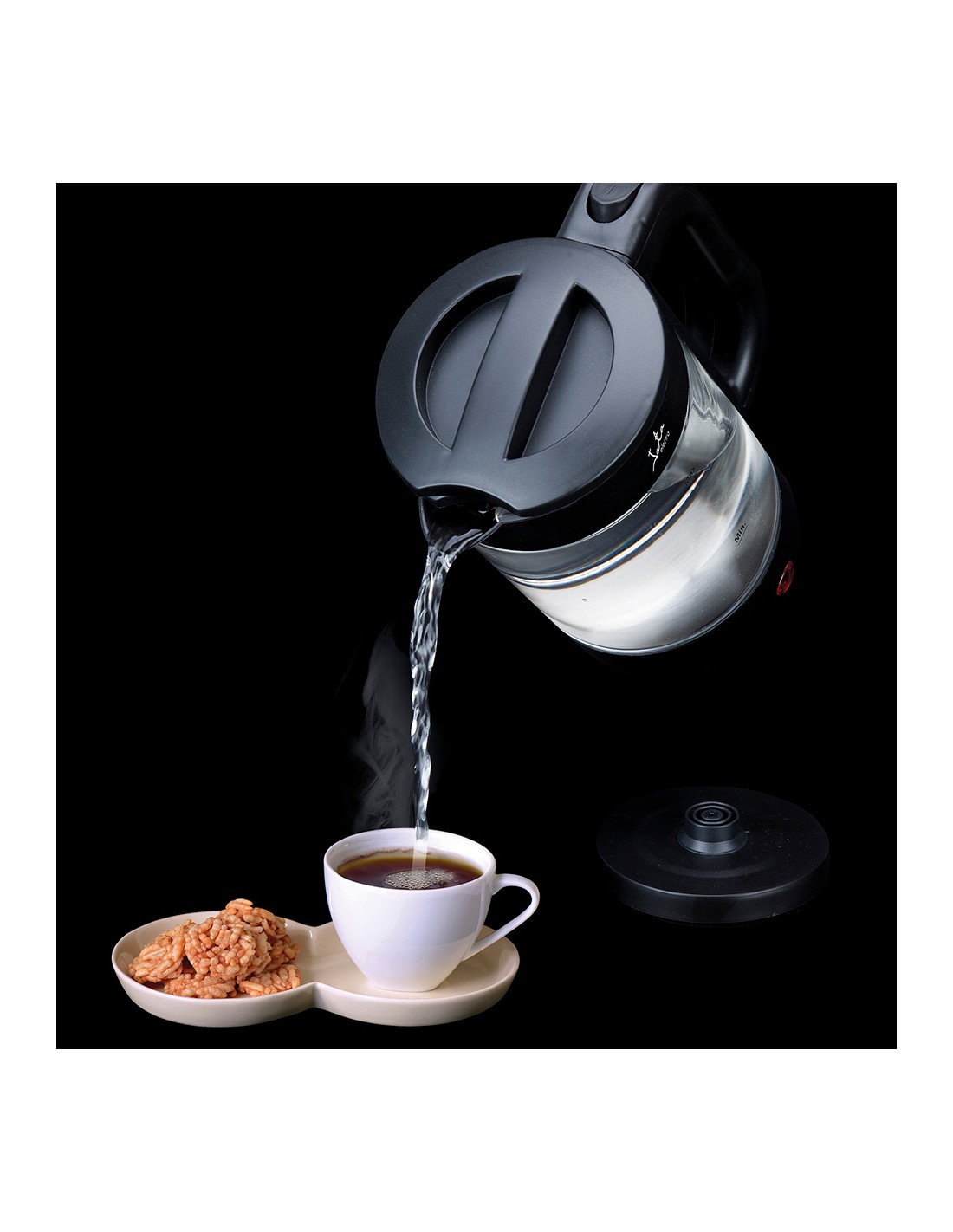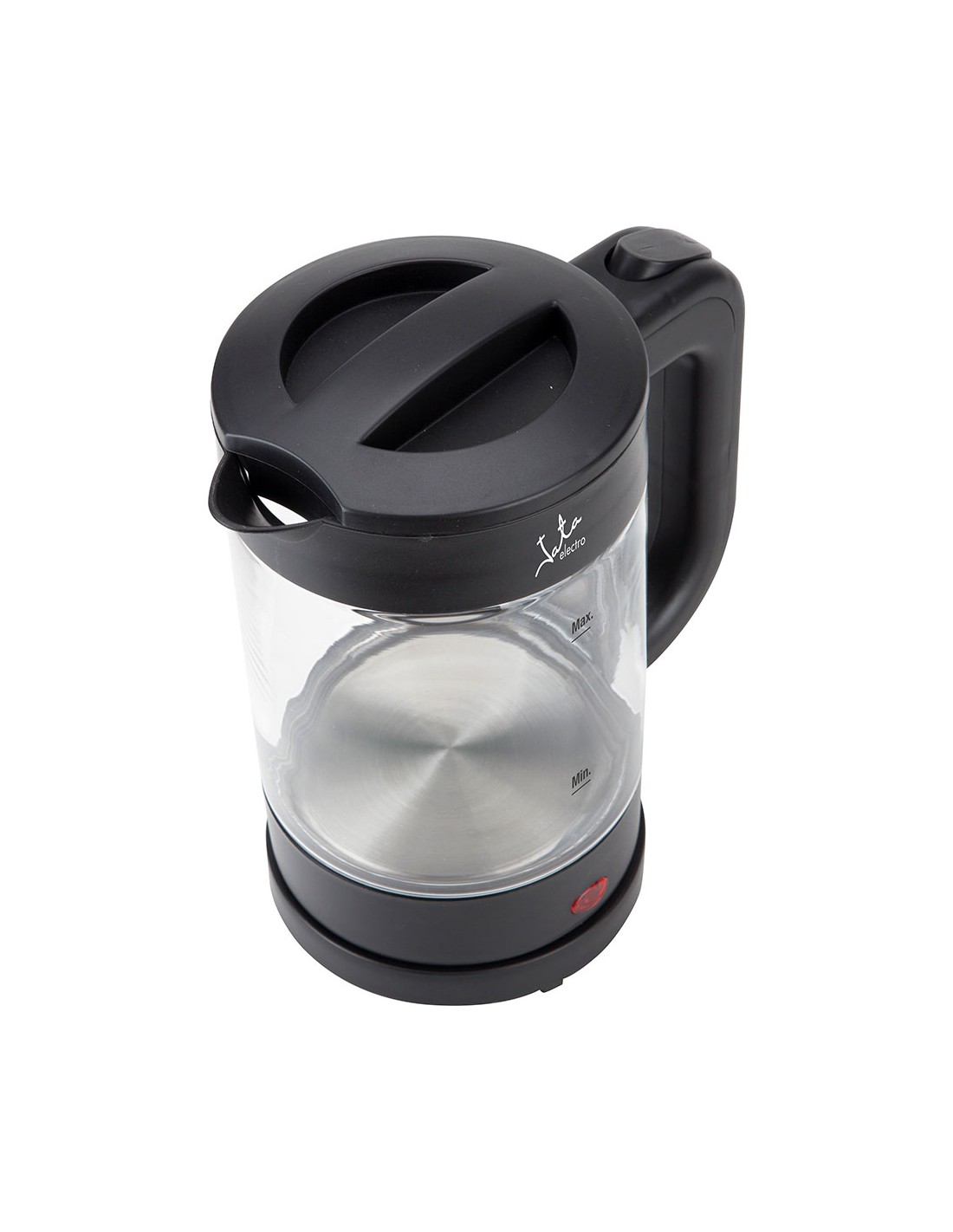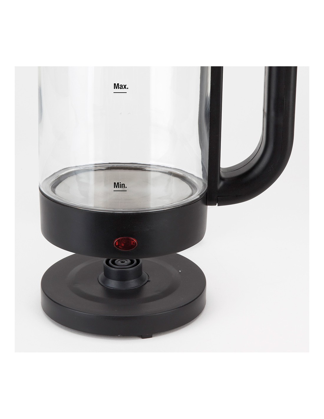Hervidor de agua eléctrico con jarra de borosilicato (libre de bpa) con tapa. capacidad de 1,2 l. placa calefactora en acero inox. desconexión automática. protección contra sobrecalentamiento. interruptor de encendido. jarra sin cable. base giratoria 360° con recogecables. voltaje 220 - 240 v. potencia máx. 1.500 w