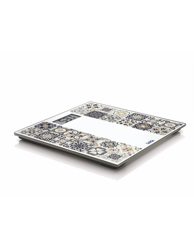 Báscula de baño electrónica con batería recargable de 3,7 v 250 mah, fabricada en cristal templado de 6 mm. carga máxima: 180 kg. modelo diseño italiano estampado marrón, cable usb incluido, 30,5 x 30,5 x 2,5 cm