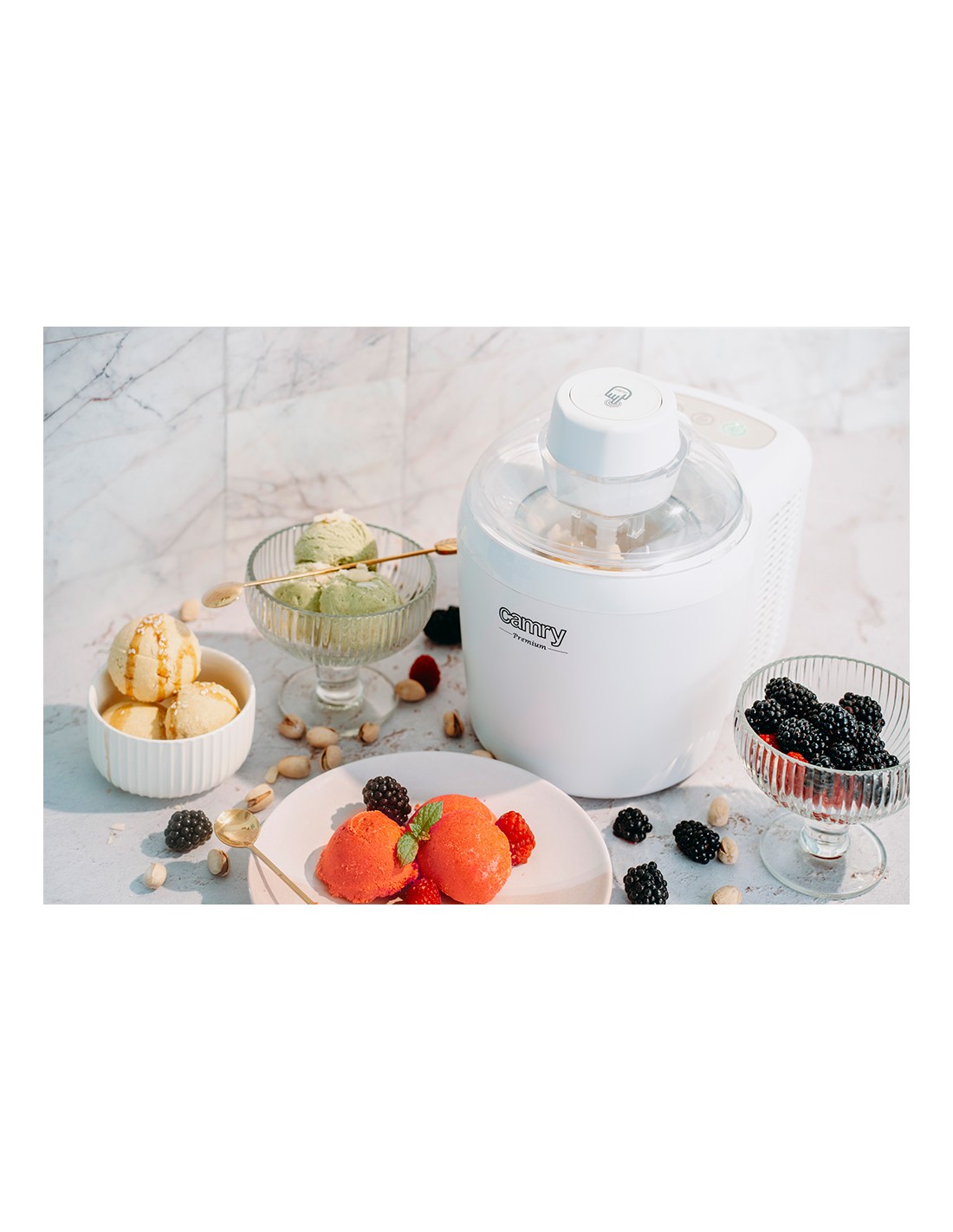 Heladera cr4481, capacidad total: 0,7 l, capacidad de trabajo: 0,3 l helado con solo tocar un botón en solo 30 minutos helados, sorbetes y yogur helado 2 niveles de congelación para elegir recipiente antiadherente fácil de limpiar no es necesario enfriar los productos previamente incluye: cuchara para helado, espátula y vaso medidor 90 w, 100-240 v ~50/60 hz
