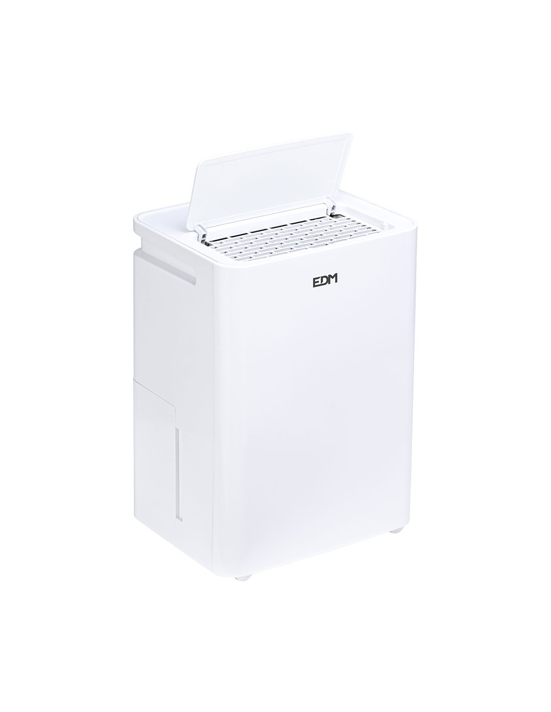 Deshumidificador portátil, potencia 260 w, depósito de 3,2 l, ventilador de 2 velocidades, temporizador, control de humedad ajustable, modo confort, indicador de depósito lleno, indicador de descongelación, posibilidad de drenaje continuo (tubo no incluido), panel de control táctil con pantalla digital, filtros lavables, ruedas incorporadas y asas laterales, deshumidificación 30°c rh80%, gas refrigerante r290, 0,038 kg, presión máxima admisible 4,0 pa, temperatura de trabajo 5 °c - 32°c, voltaje: 220 - 240 v ~ 50/60 hz. medidas: 29 x 23 x 41,4 cm