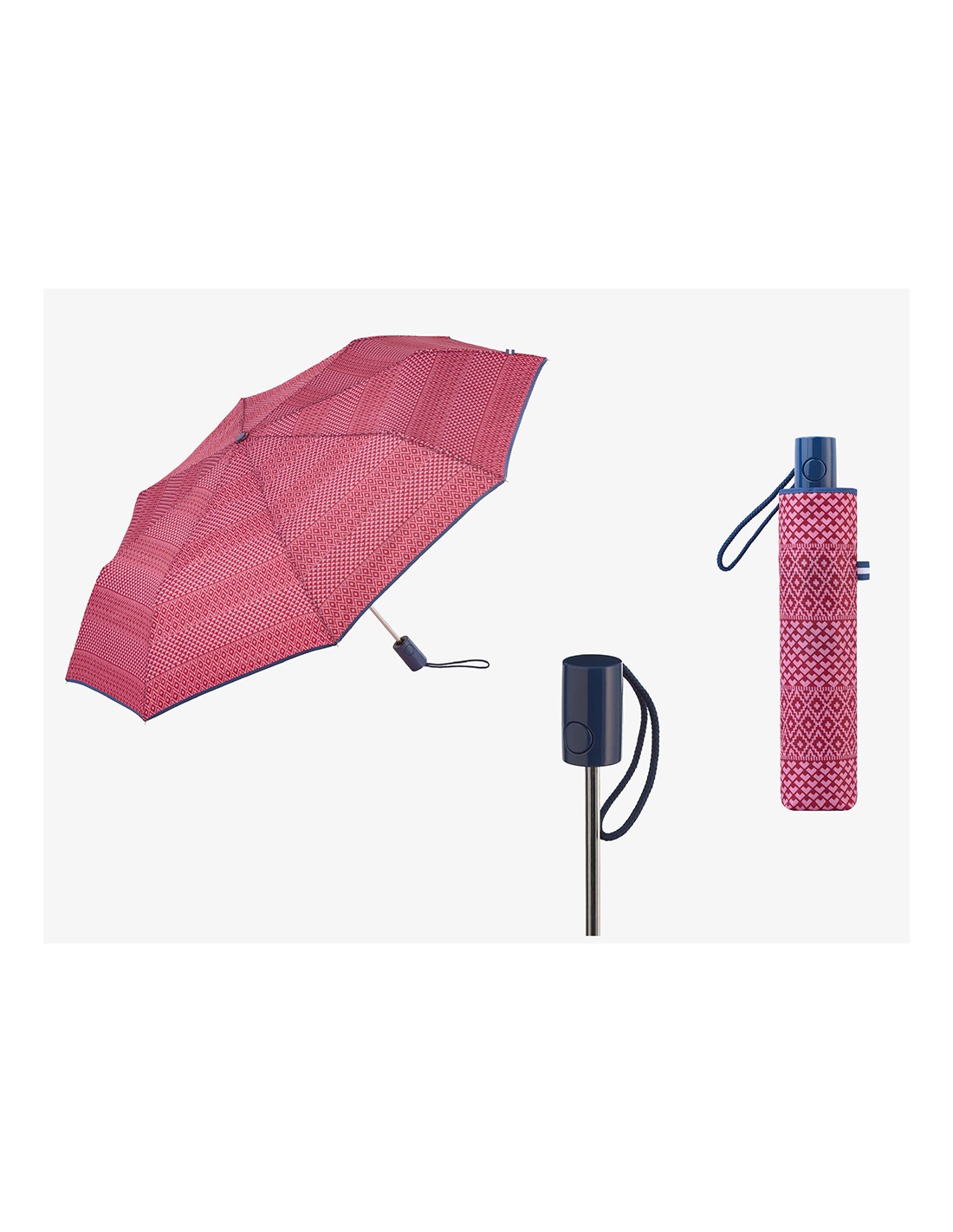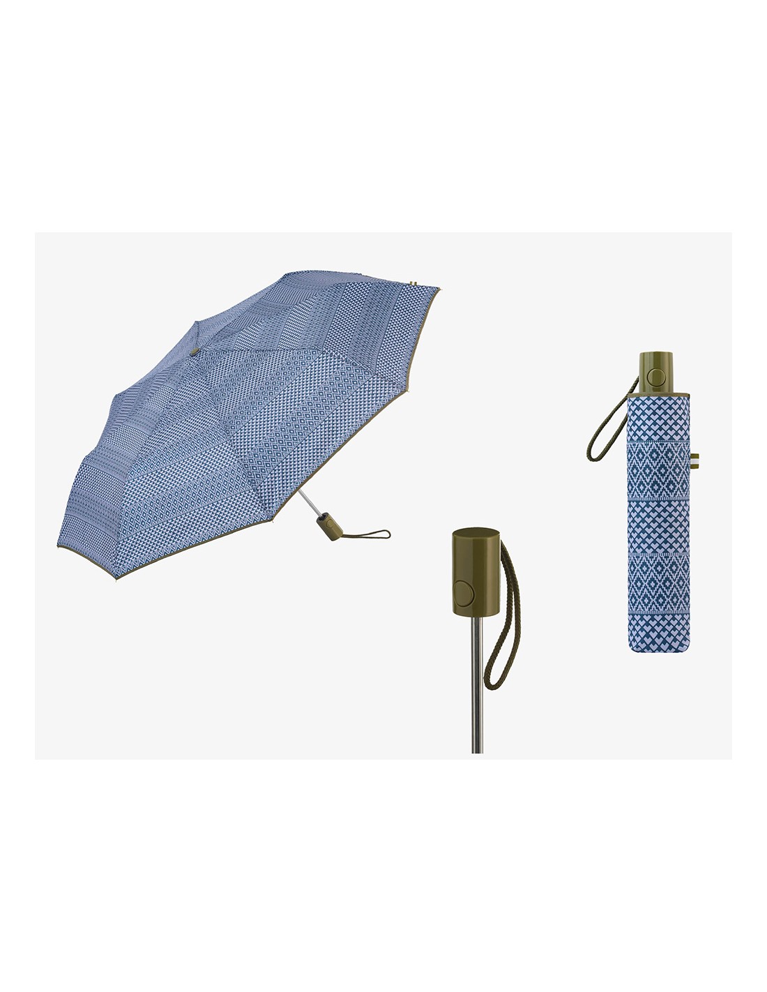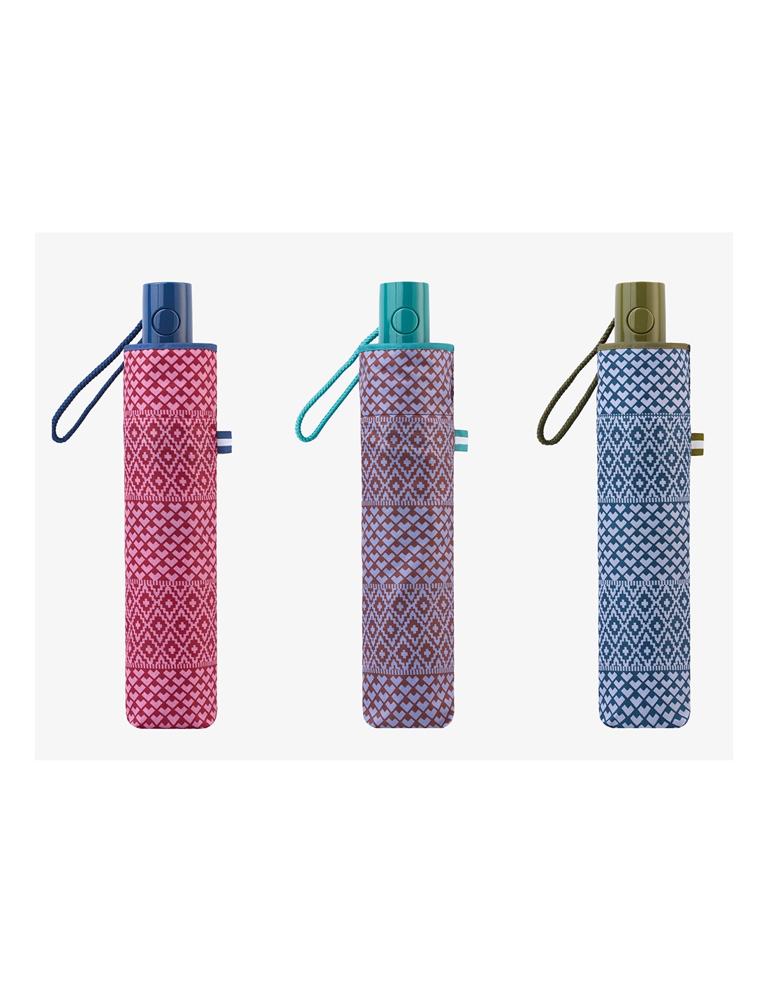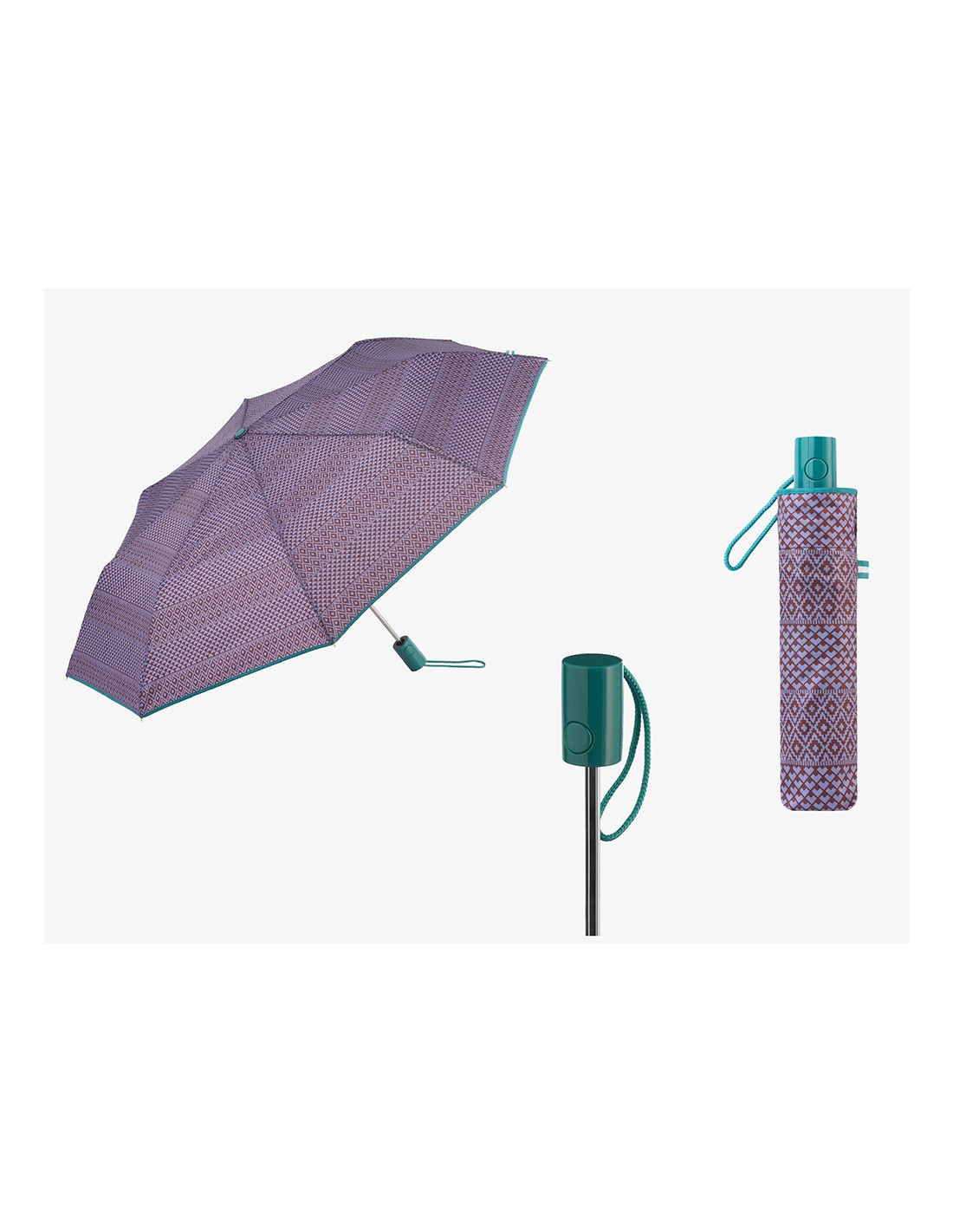 Paraguas plegable automático con funda, estampado de motivos geométricos étnicos, colores surtidos, tecnología windproof a prueba de viento, con protección uv 50+, ø1 m, dimensiones plegado 6 x 4 x 30 cm