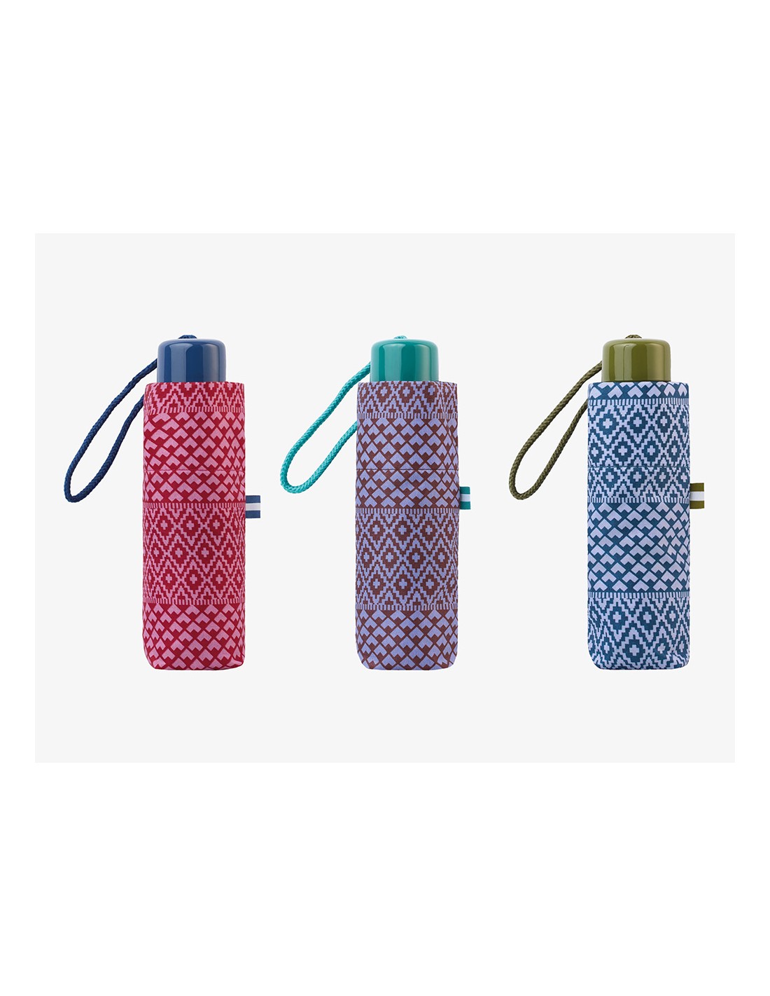 Paraguas mini plegable manual con funda, estampado con motivos geométricos étnicos, colores surtidos, tecnología windproof a prueba de viento, con protección uv 50+, ø 90 cm, dimensiones plegado 6 x 4 x 18 cm