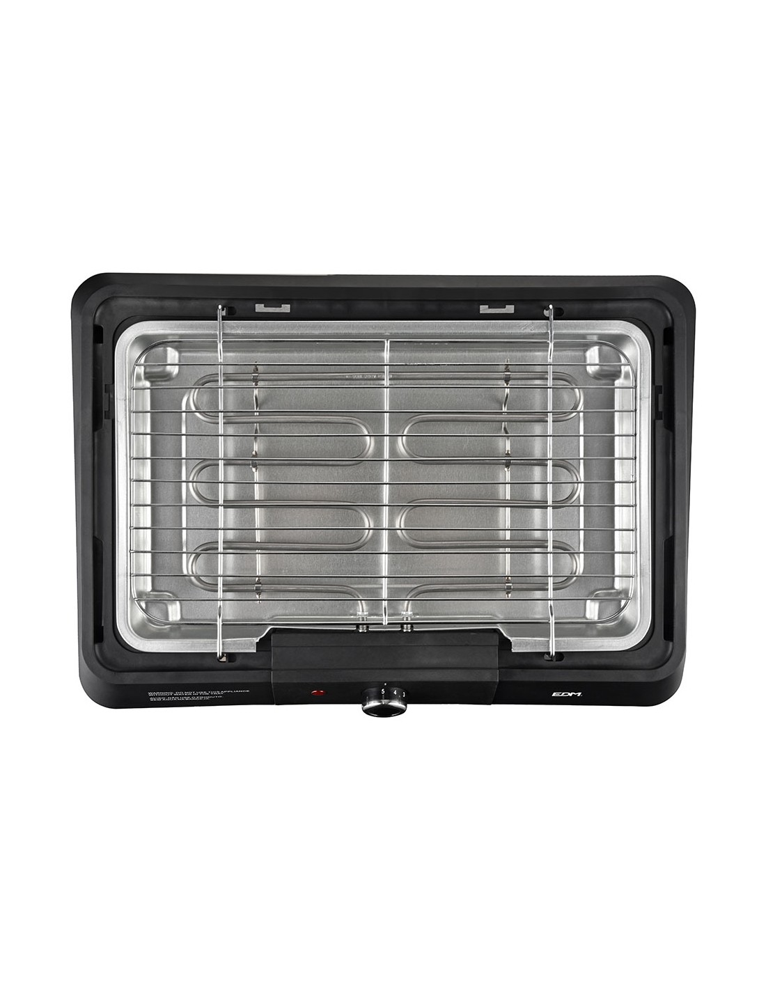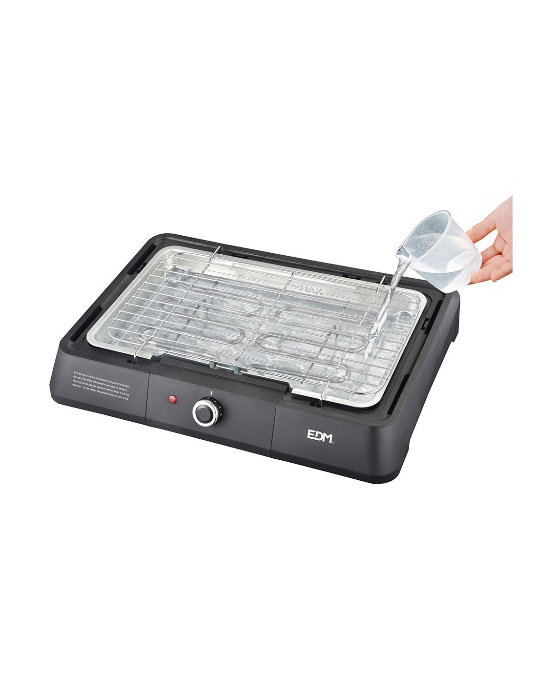 Barbacoa eléctrica negra, 2200 w, 220-240 v ~ 50-60 hz, área de cocción 40 x 23 cm, parrilla desmontable, control automático del termostato, termostato regulable niveles 1 - 5, con indicador luminoso, con micro interruptor de seguridad, con bandeja de agua (usar siempre con agua), patas antideslizantes, dimensiones de la barbacoa 50 x 34,5 x 9,5 cm