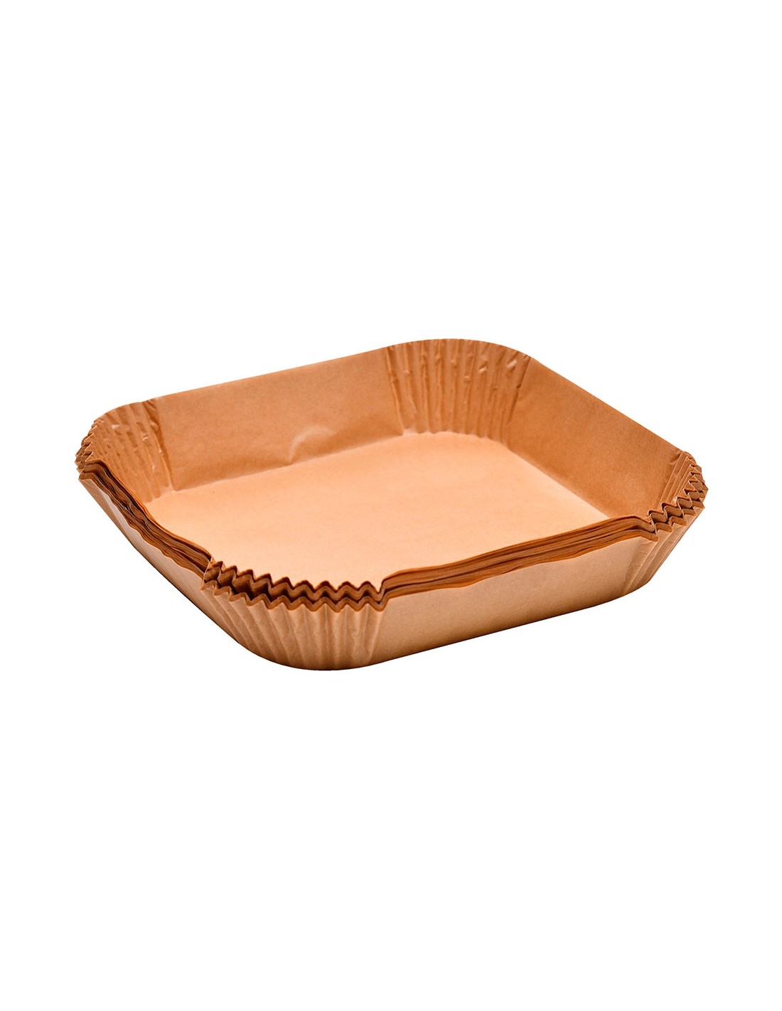 Bandeja cuadrada de papel para freidora de aire, marrón. 50 uds, medidas ø20 x 20 x 4,5 cm