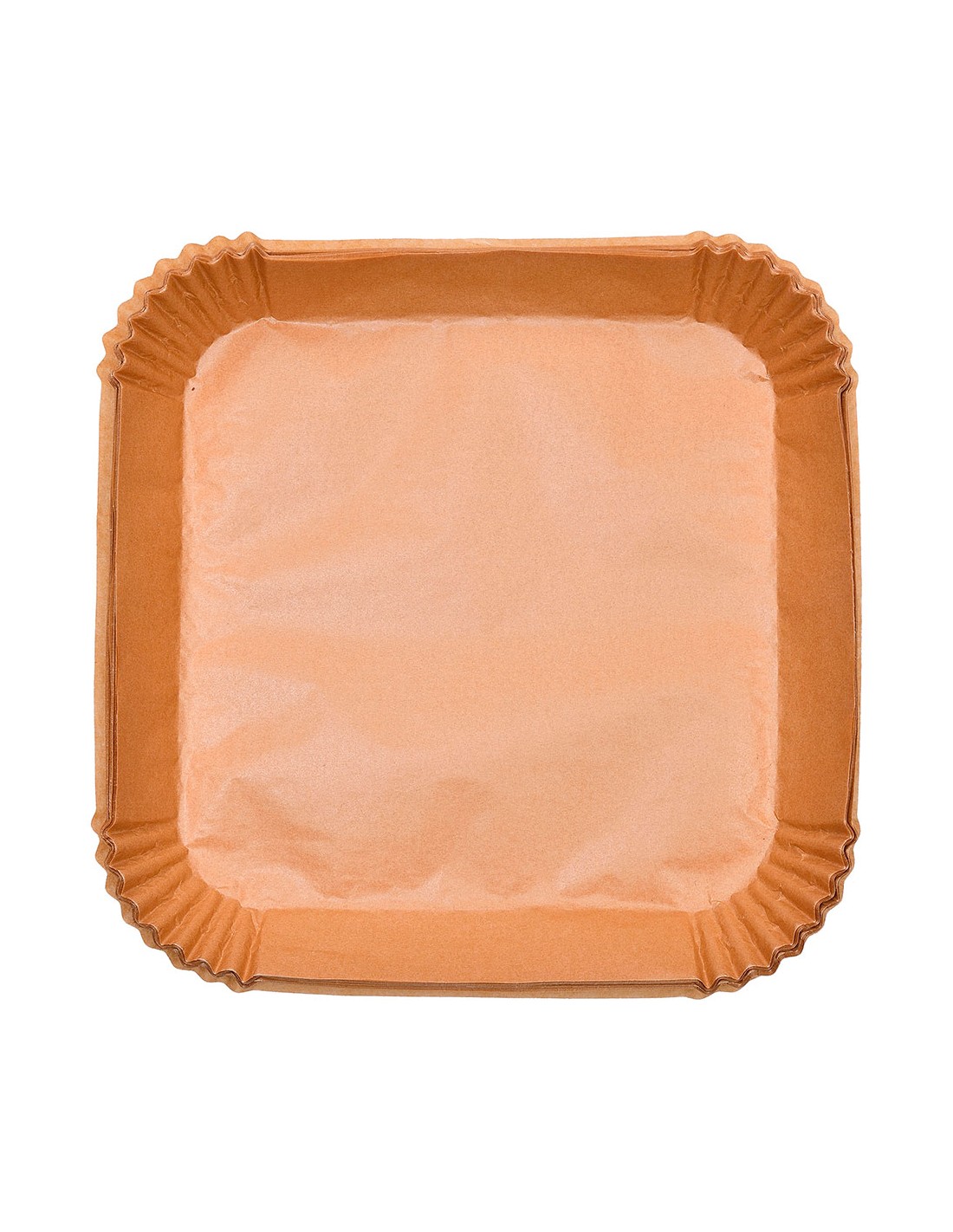 Bandeja cuadrada de papel para freidora de aire, marrón. 50 uds, medidas ø26 x 26 x 4,5 cm
