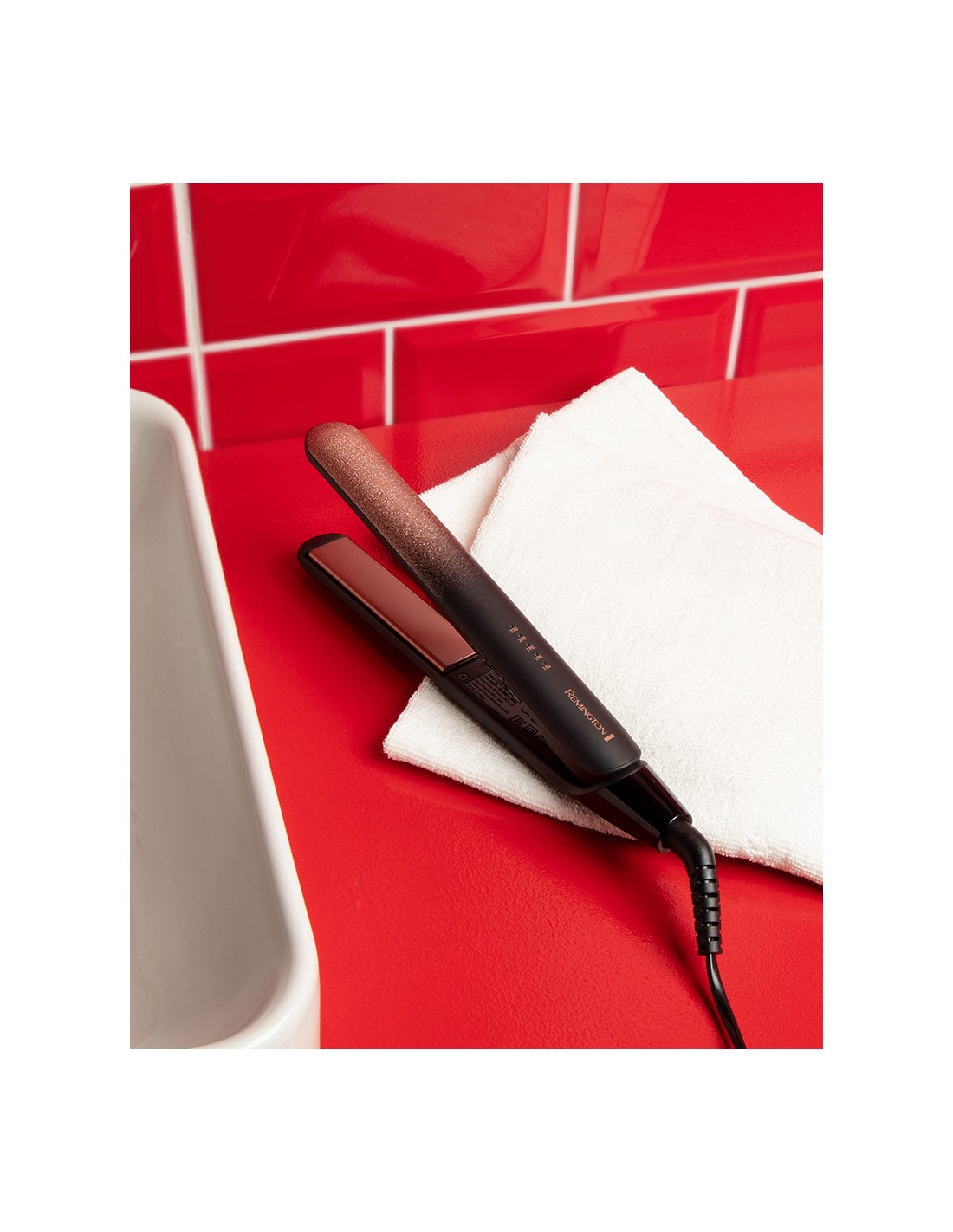 Plancha de pelo rose shimmer con revestimiento de cerámica avanzada para un deslizamiento sin esfuerzo 2 veces más suave. control de temperatura digital con 5 ajustes, de 150 a 230 °c. calentamiento rápido, a punto para usar en 15 segundos. su diseño curvado le permite rizar el pelo con toda facilidad. placas extralargas de 110 mm. placas flotantes para una presión uniforme. función turbo. dispositivo de cierre para guardar. apagado automático de seguridad después de 60 minutos de inactividad. cable giratorio. incluye neceser