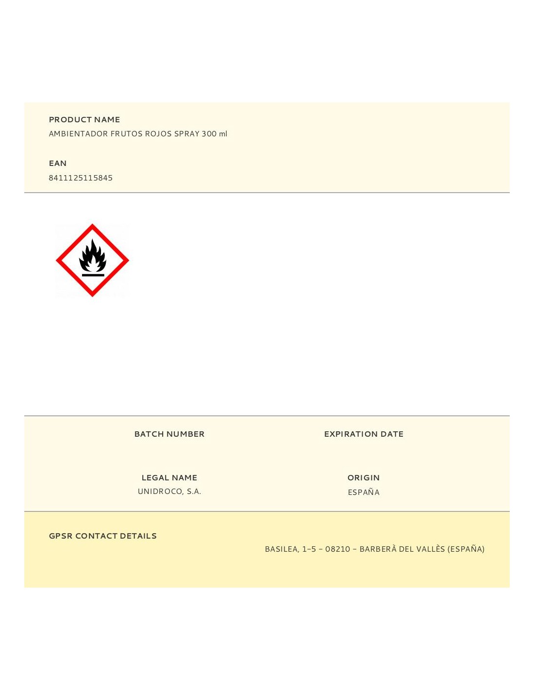 Ambientador en spray con aroma dulce y frutal a frutos rojos 300 ml. refresca el ambiente y deja un aroma duradero