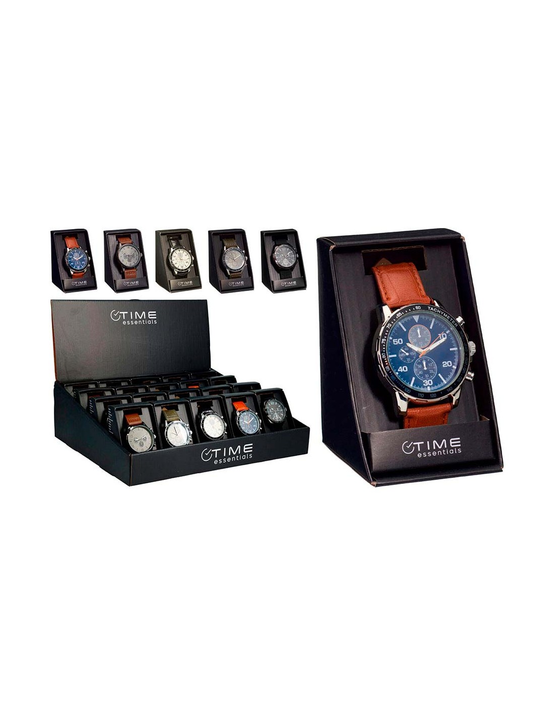 Reloj de hombre, 255 x 45 x 11 mm, modelos variados, con caja de aleación y hebilla trasera de acero inoxidable, incluye batería, presentación en caja regalo negra de cartón, presentado en expositor de 20 uds
