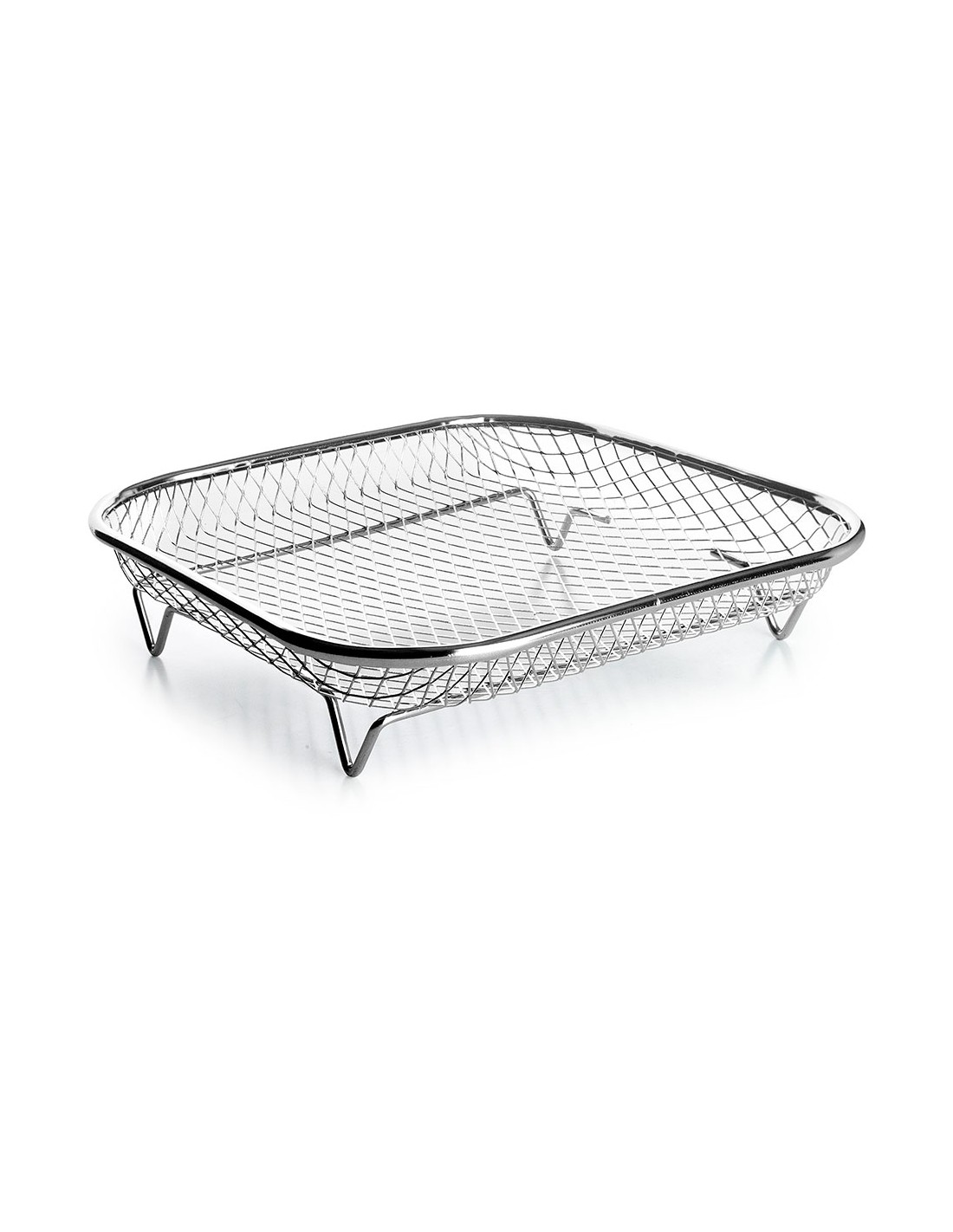 Cestillo cuadrado para freidora de aire, fabricado en acero inoxidable, permite una circulación de aire óptima para obtener alimentos crujientes, pudiéndose utilizar tanto dentro de moldes metálicos, papel o silicona, como directamente sobre la cubeta de la freidora. apto para lavavajillas 19,50 x 19,50 x 4,50 cm