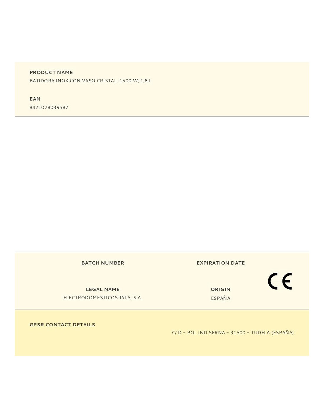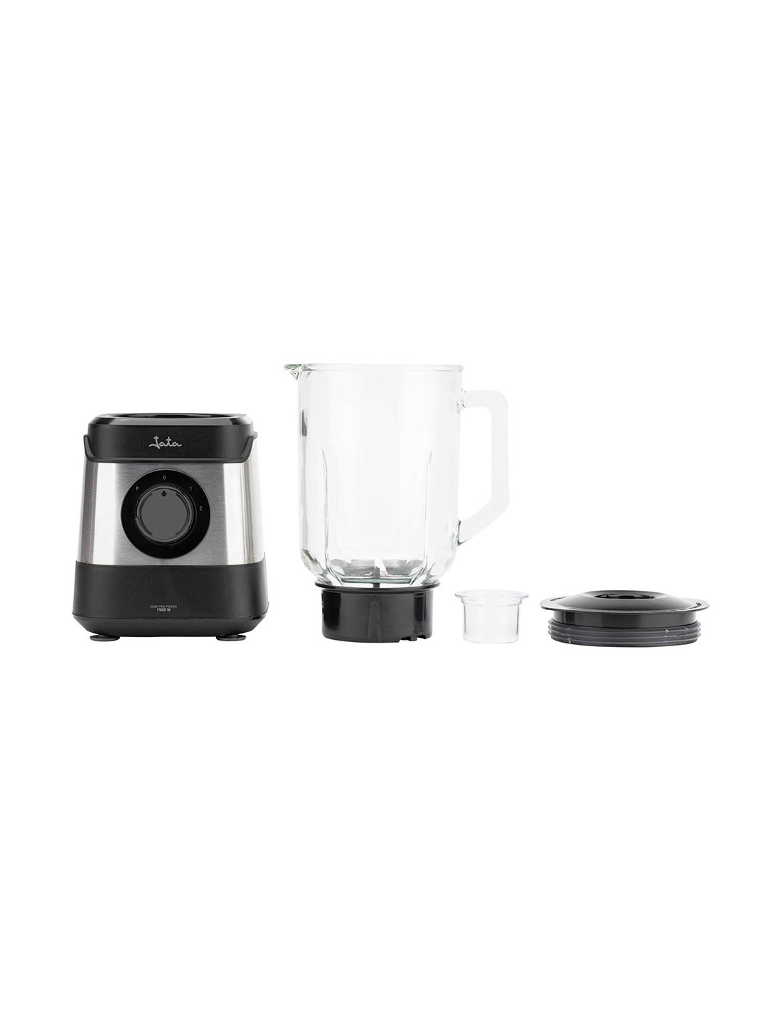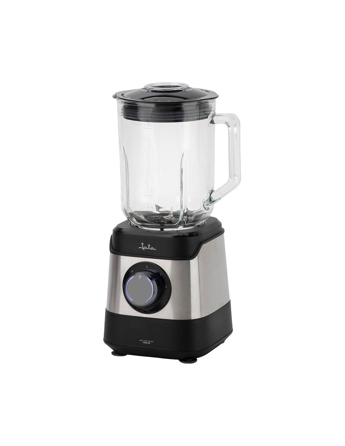 Batidora inoxidable, 1500 w, 17000 rpm con jarra de cristal graduada de 1,8 l con boca de vertido, tapón transparente 45 ml motor ac de alto rendimiento con protección al sobrecalentamiento 4 cuchillas de acero inoxidable, pica hielo 2 velocidades + pulse bloqueo de seguridad homologado, patas antideslizantes, boca de llenado amplia 220-240 v~50-60 hz