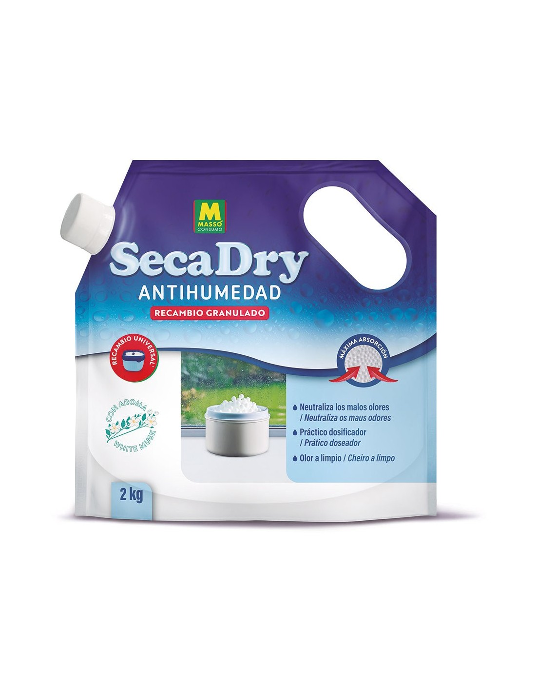 Recambio granulado antihumedad secadry bolsa dosificadora 2 kg - regula el exceso de humedad en la cubeta inferior del aparato utilizado. al utilizarlo sin bolsa, el gránulo absorbe la máxima humedad y previene las consecuencias negativas del exceso de humedades. indicado para los espacios cerrados o con poca ventilación. neutraliza los malos olores sin impregnar con su aroma white musk
