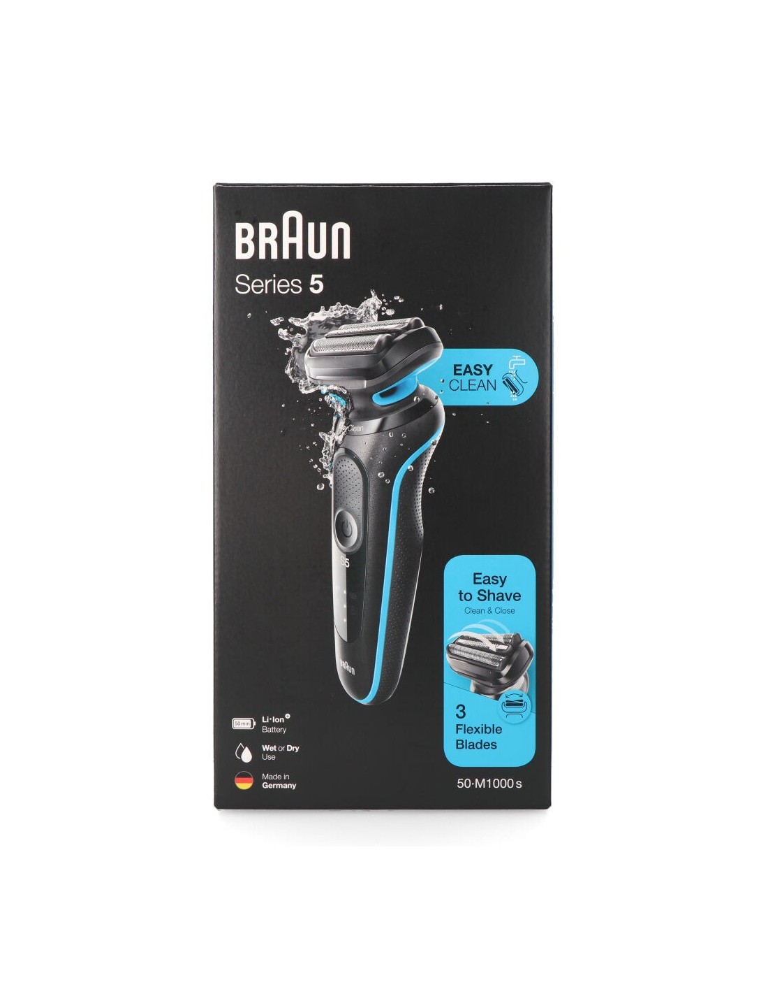 Afeitadora eléctrica recargable, series 5, con 3 cuchillas flexibles con láminas de alta calidad: 1 cuchilla middle trimmer para cortar los pelos largos y difíciles y 2 cuchillas sensofoil para un apurado máximo sin dañar la piel. fácil limpieza debajo del agua, bateria recargable con autonomía de hasta 50 min