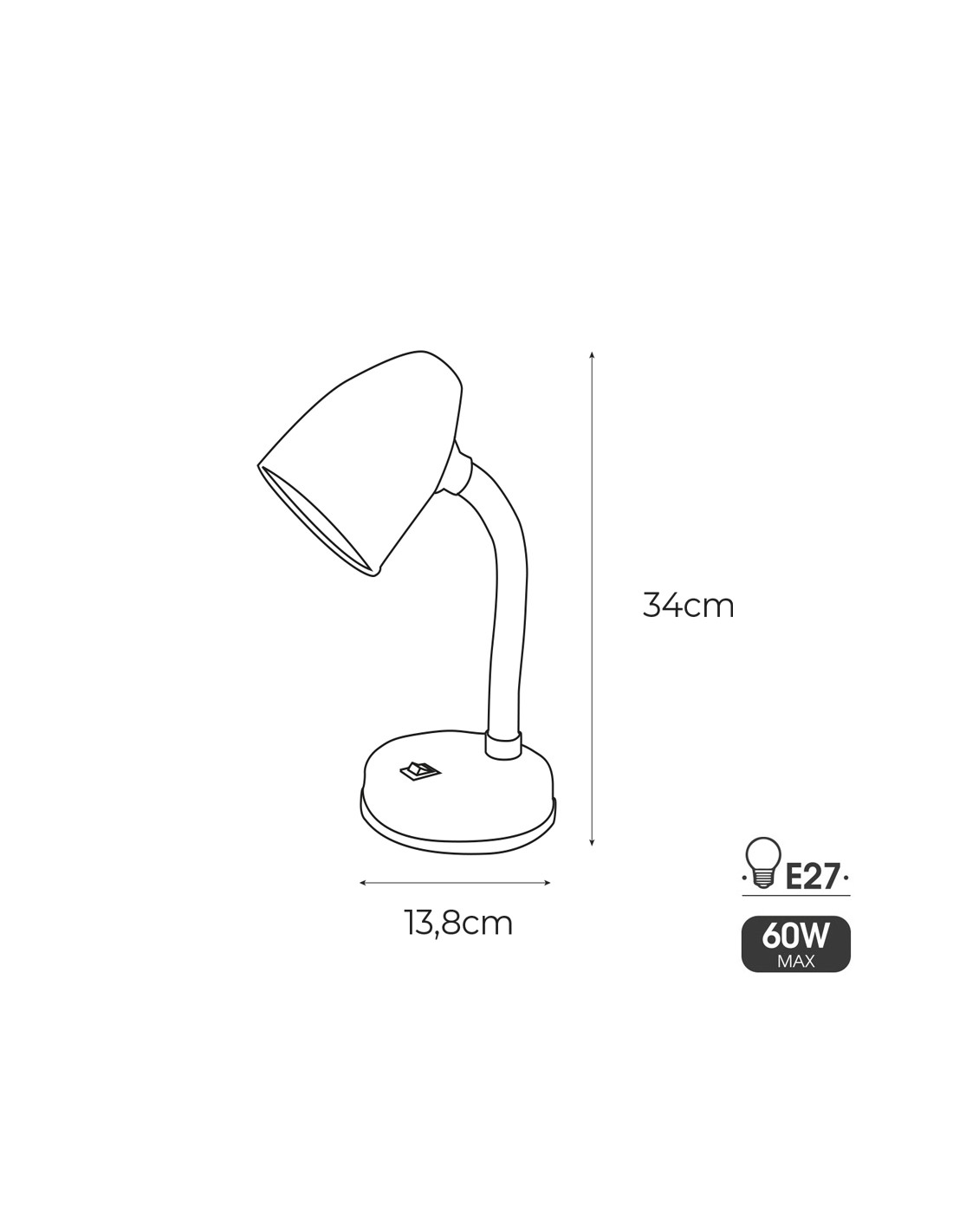Flexo de sobremesa modelo amsterdam e27 color negro. medidas: 13x34cm (ancho/alto) potencia maxima: 60w. tension: 220-240v 50hz ce edm