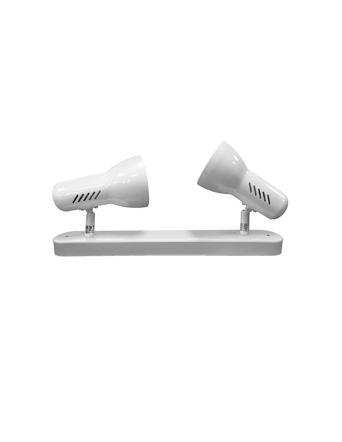 Foco 2 elementos color blanco e27 modelo galaxy. potencia máxima: 60 w (bombillas no incluidas). medida regleta: 37 x 8 x 13,7 cm, foco: ø8 x 13,5 cm tensión: 220 - 240 v