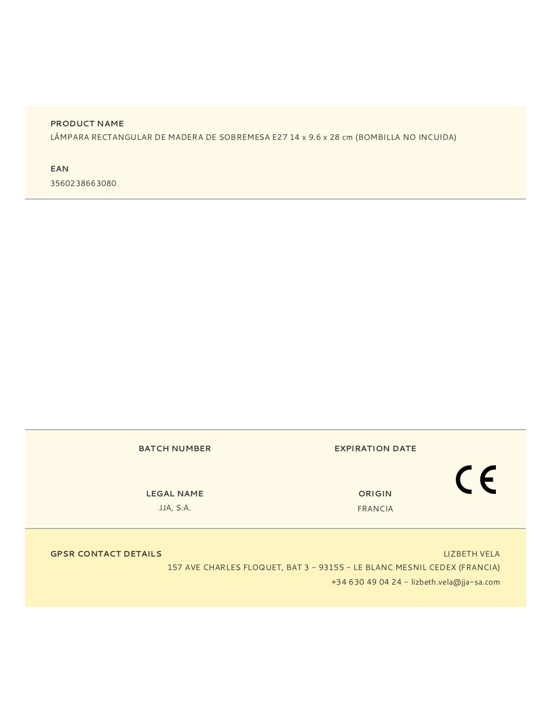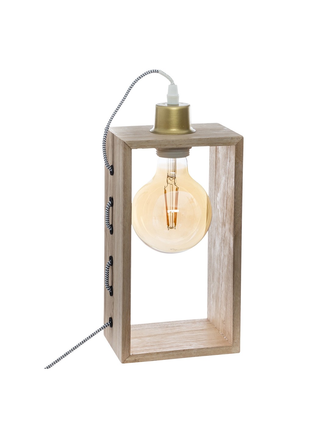 Lámpara rectangular de madera de sobremesa e27. medidas:14x9.6x28 cm (bombilla no incuida)