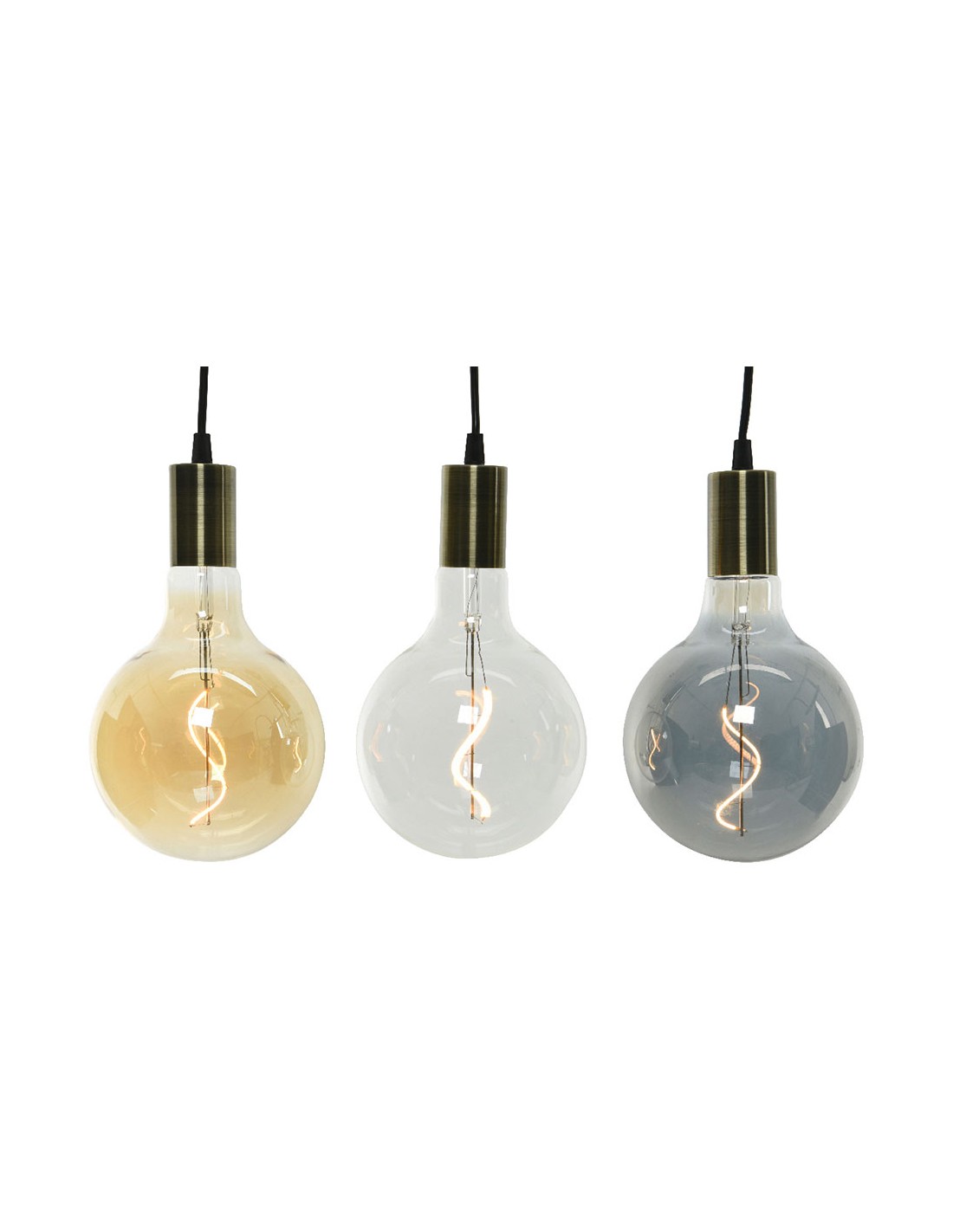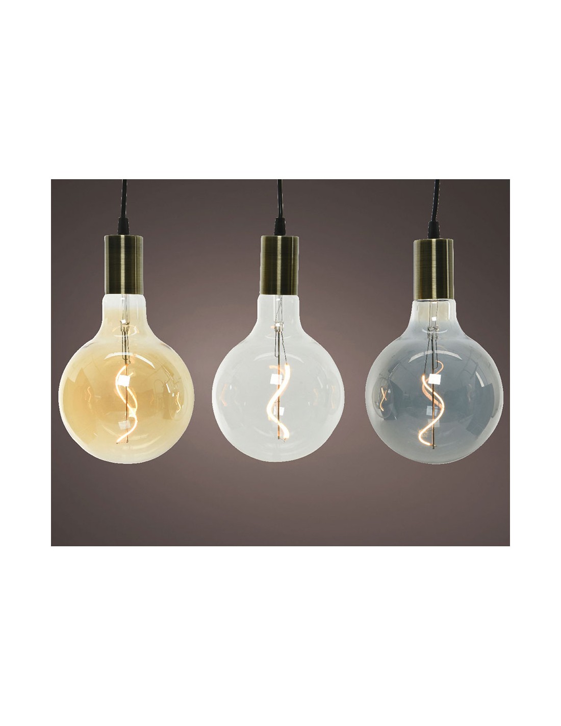 Bombilla decorativa colores surtidos (claro-ámbar-ahumado) ip44. luz blanco cálido. función de temporizador: 6h encendida/18h apagada. largo de cable 90cm dimensiones: ø15x15cm (diametro/altura). uso exterior/interior. funciona con 4xaa (no incluidas)