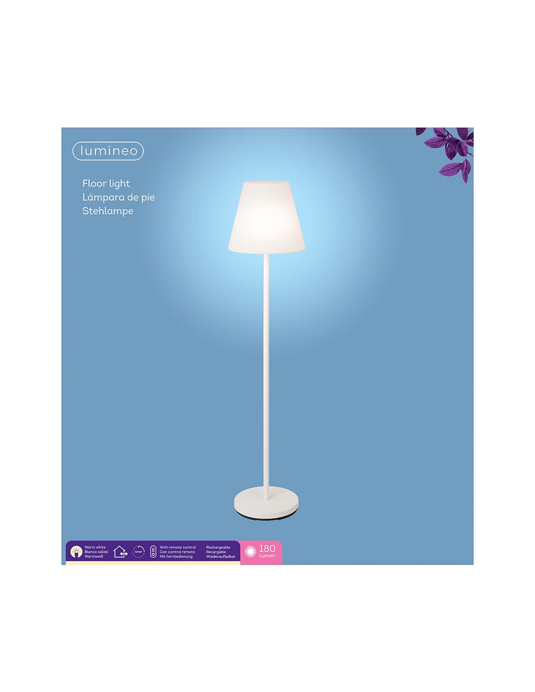 Lámpara de pie color blanco para exterior y interior recargable con mando a distancia 150cm 894460 perfecta lámpara de diseño minimalista para exterior y interior con mando a distancia para controlar la intensidad de la luz, 180 lumen y led cálido. batería 2600mah 18650 li-ion