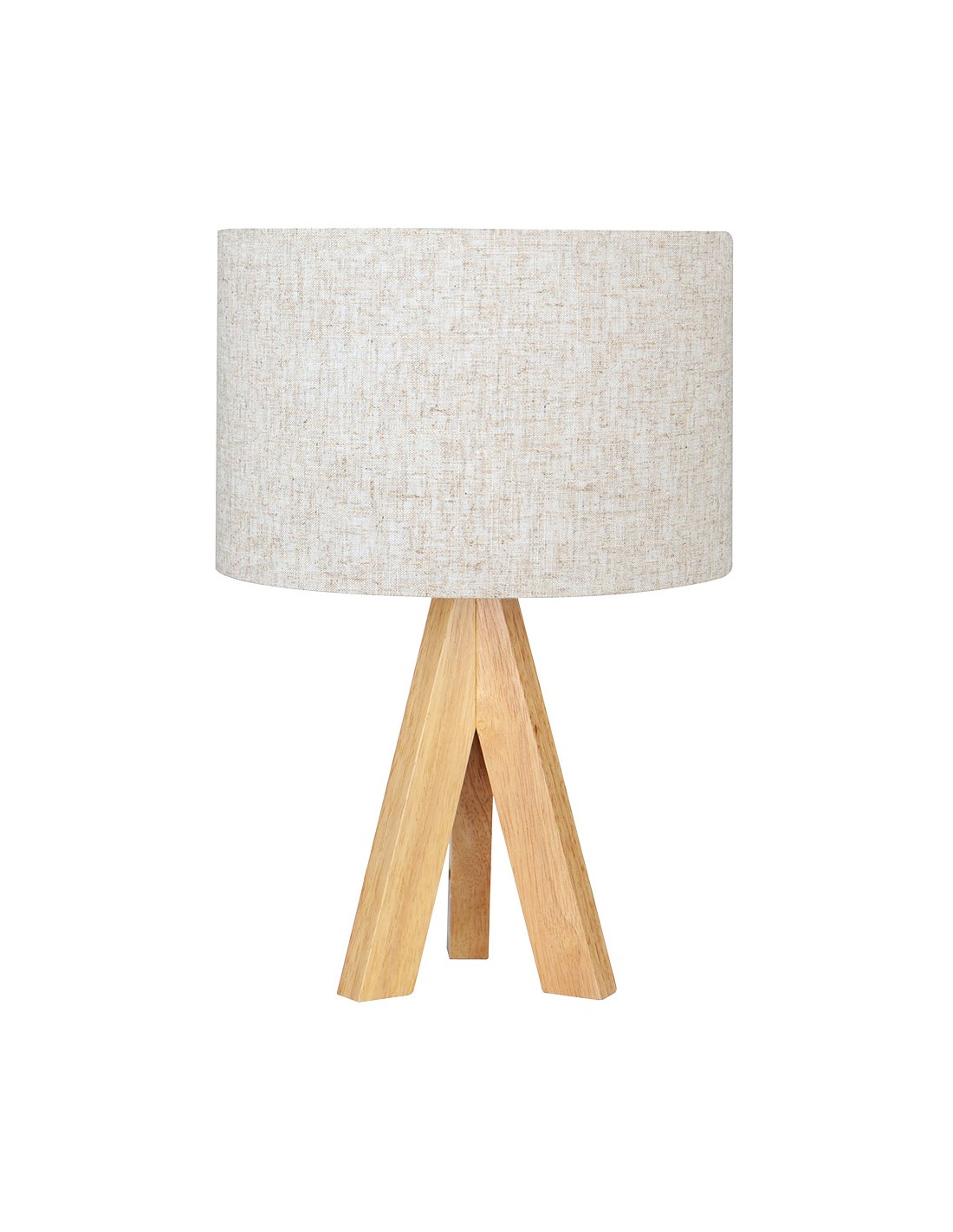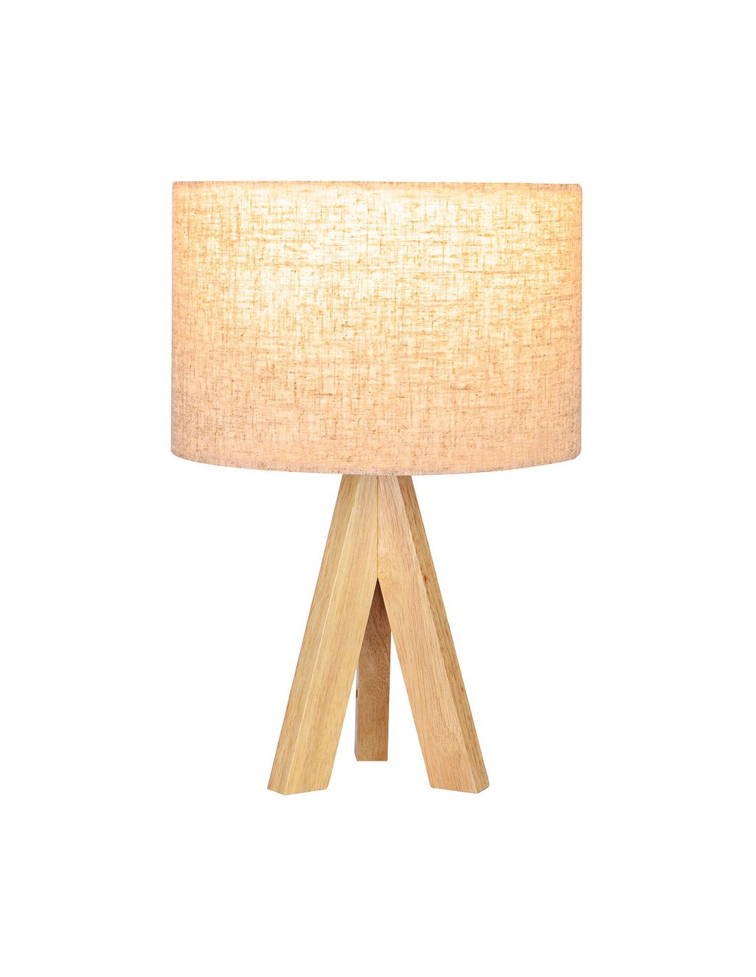 Lámpara mesa e27 madera y tela. incluye cable con interruptor. dimensiones: ø25x37cm edm
