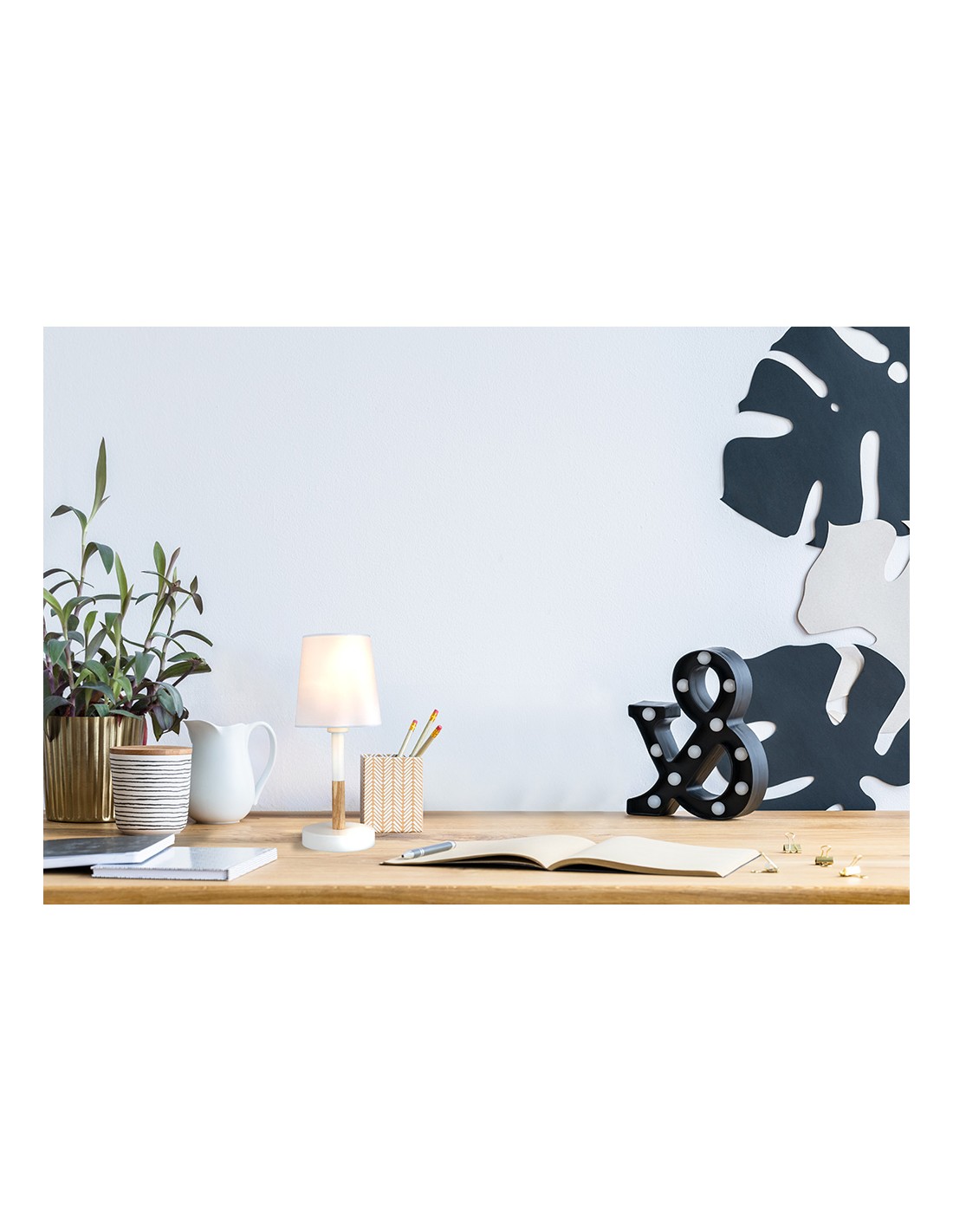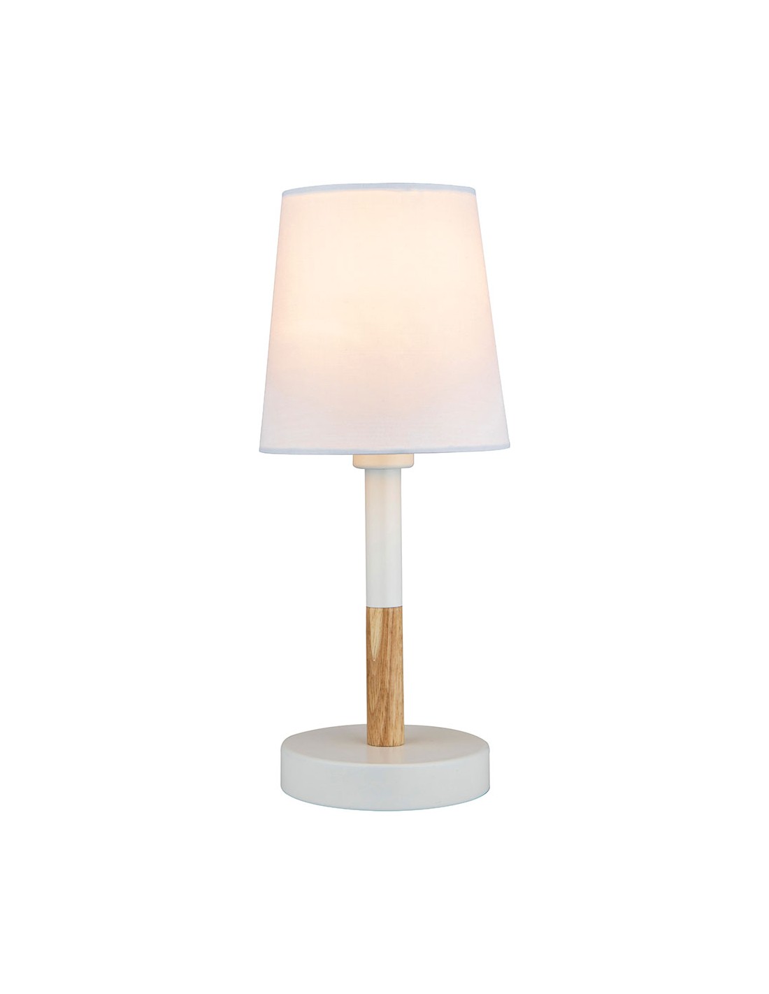 Lámpara de mesa, e14 máx 40 w 220-240v-50hz longitud del cable 150cm medida ø 13 x 32 cm, acero y madera, blanca, bombilla no incluida