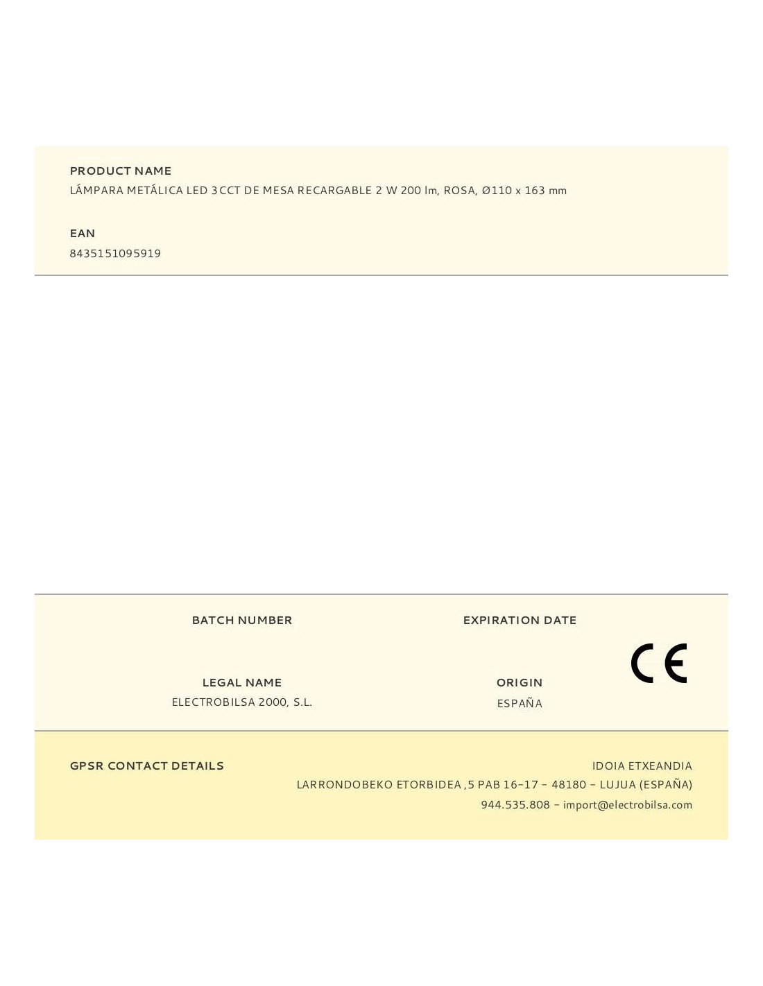 Lámpara táctil metálica led 3cct (3000k-4000k-6000k) de mesa recargable 2 w 200 lm 1200 mah, ip20, rosa, ø110 x 163 mm, cambia de tono e intensidad, tiempo de carga 3 h, autonomía 6-16 h, incluye cable usb-c