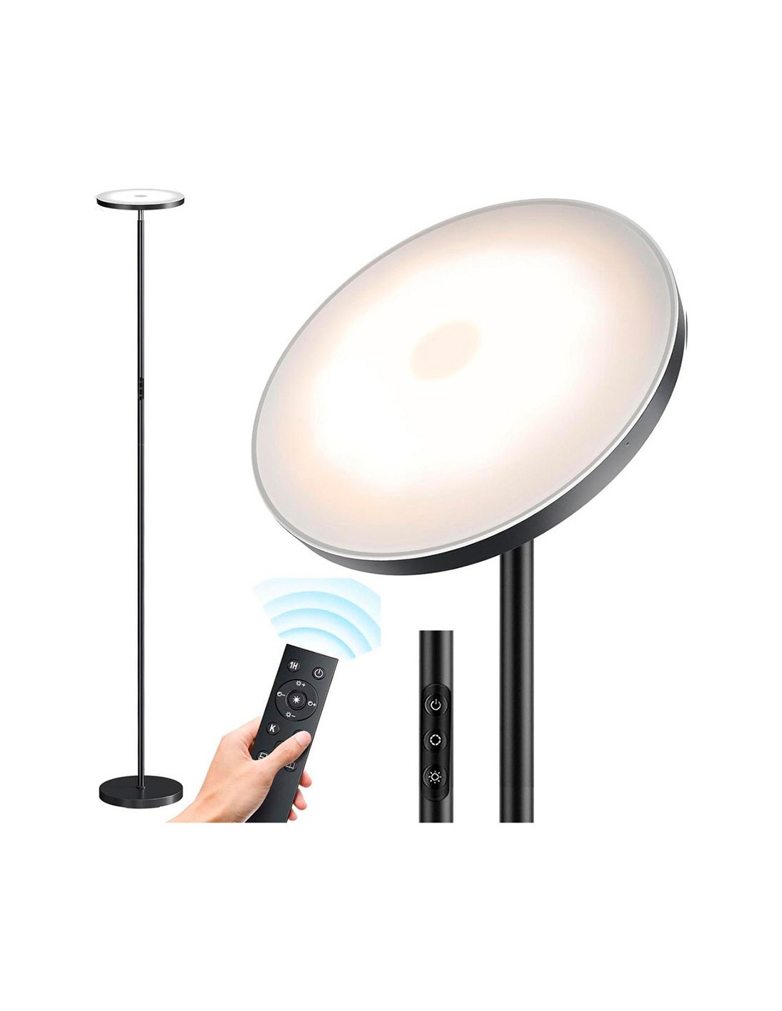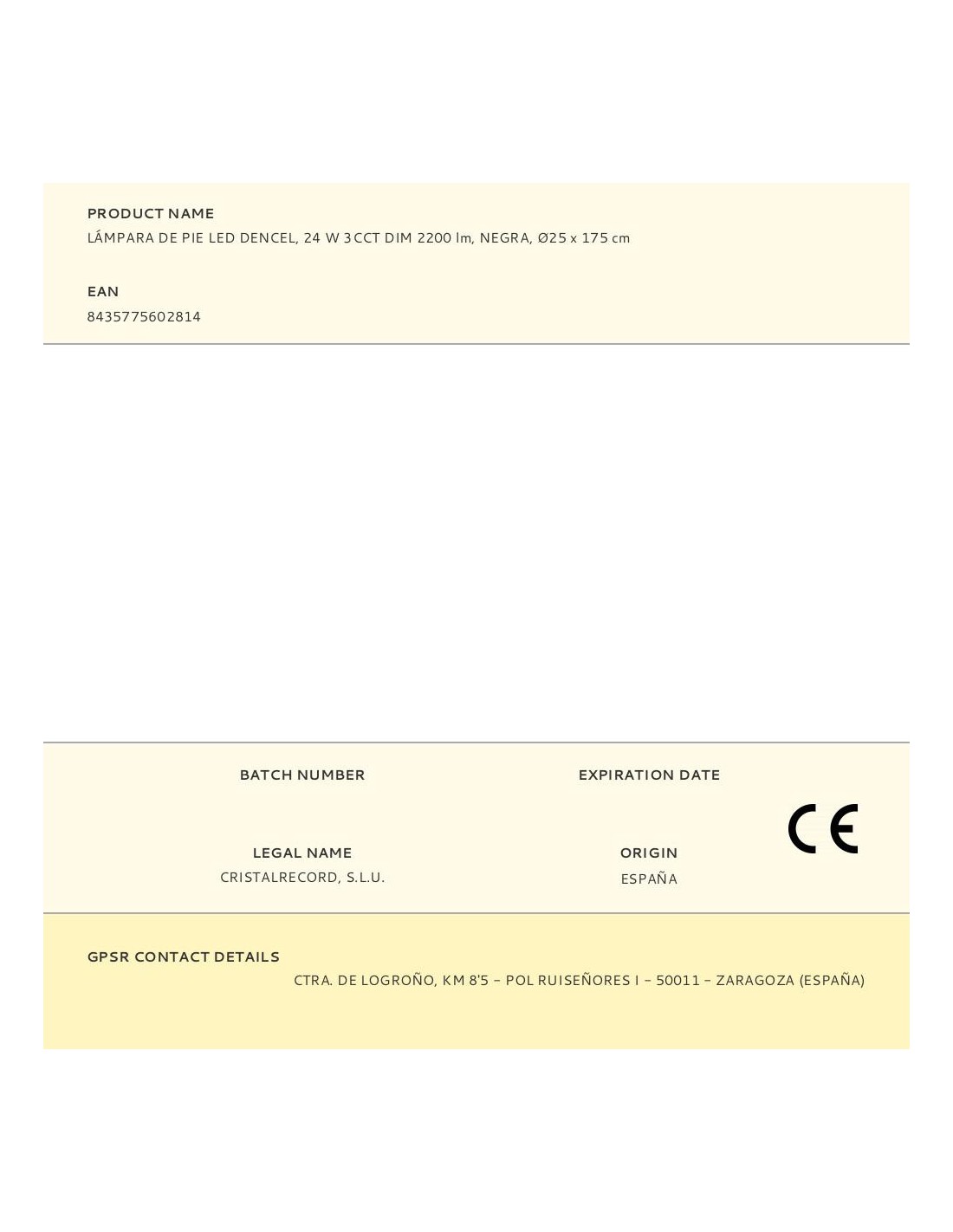 Lámpara de pie led dencel, 24 w, luz blanca cct 2700-4000-6500k, dimable, 2200 lm, irc/cri 80 negra, metálica temporizador 1 h con mando a distancia (2 x aa no incluidas) clase energética f 100-240v~50-60hz ø25 x 175 cm