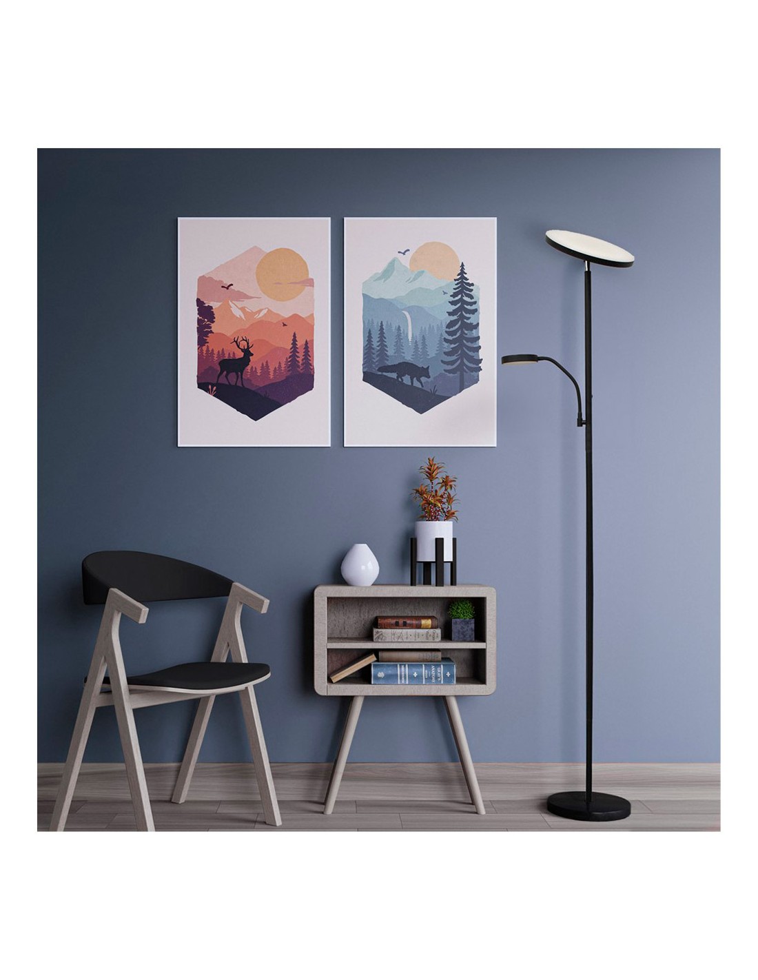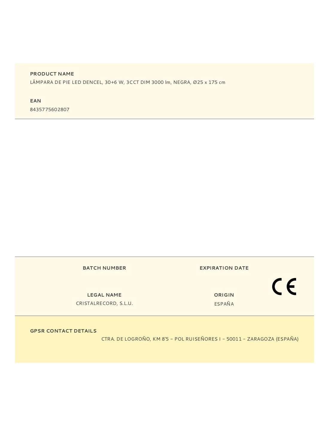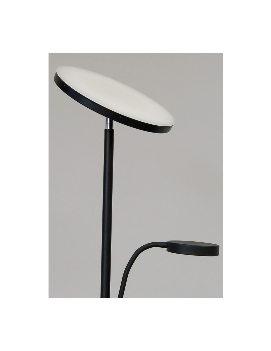 Lámpara de pie led dencel, 30+6 w, luz blanca cct 2700-4000-6500k, dimable, 3000 lm, irc/cri 80 negra, metálica temporizador 1 h con mando a distancia (2xaa no incluidas) clase energética f 100-240v~50-60hz ø25 x 175 cm