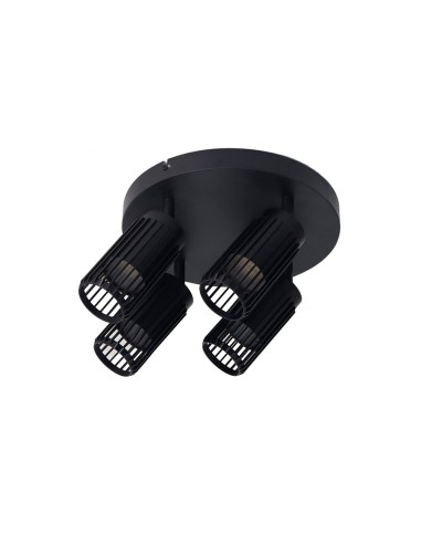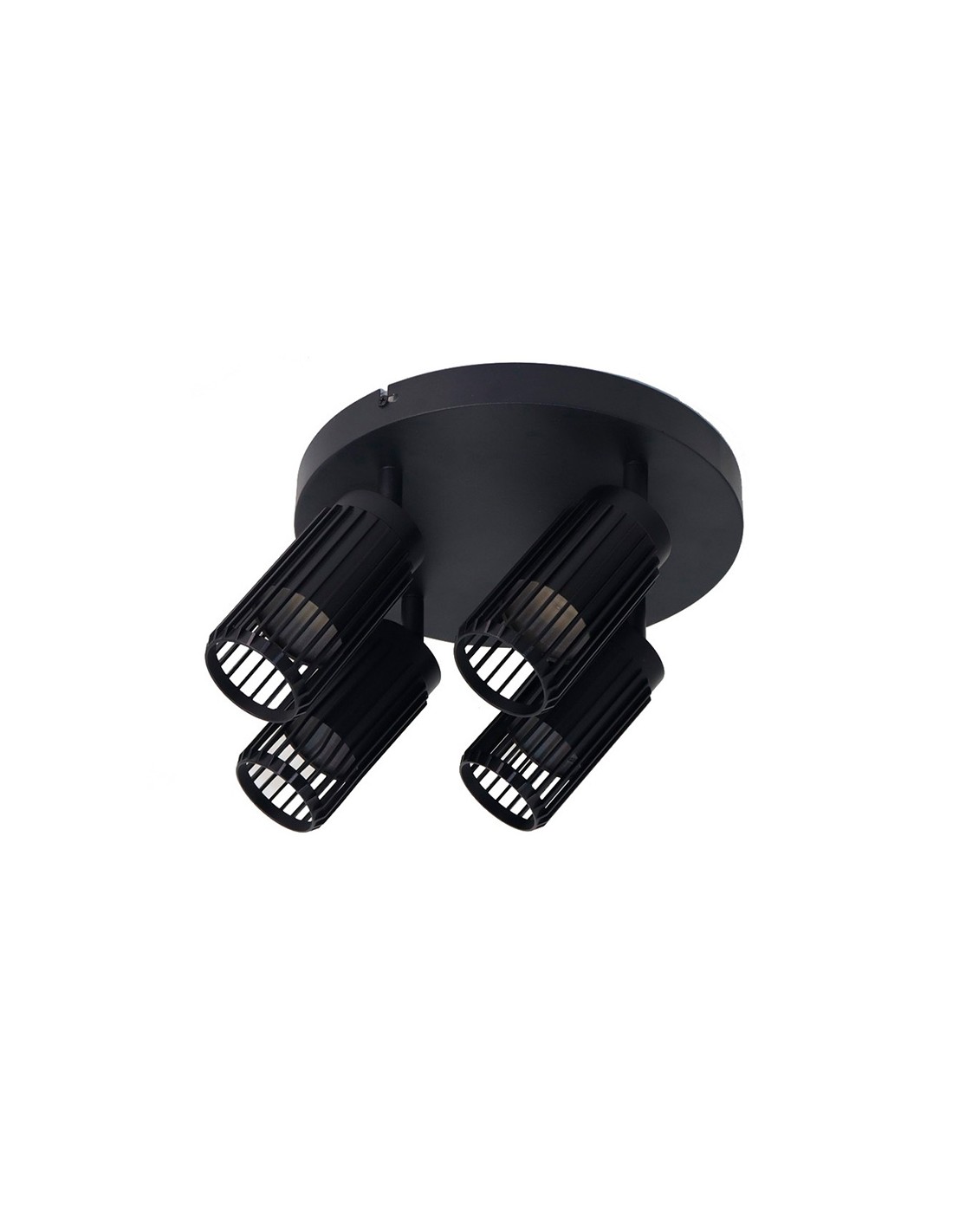 Foco 4 elementos sahara arenado gu10 10 w (bombillas no incluidas) cilíndricos de aluminio negro texturizado en relieve con parte inferior de rejilla ip20 protección clase i 220-240v~50hz negro 23 x 6 x 20 cm