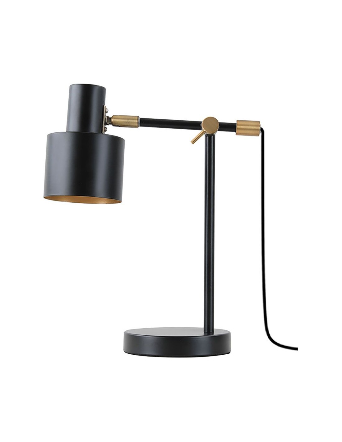 Lámpara de mesa, modelo serantes, 1 x e27, color negro con detalles dorados, metálica, moderna, pantalla cilíndrica, ip20 máximo 25 w 220 - 240 v ~50/60 hz 300 x 140 x 351 mm