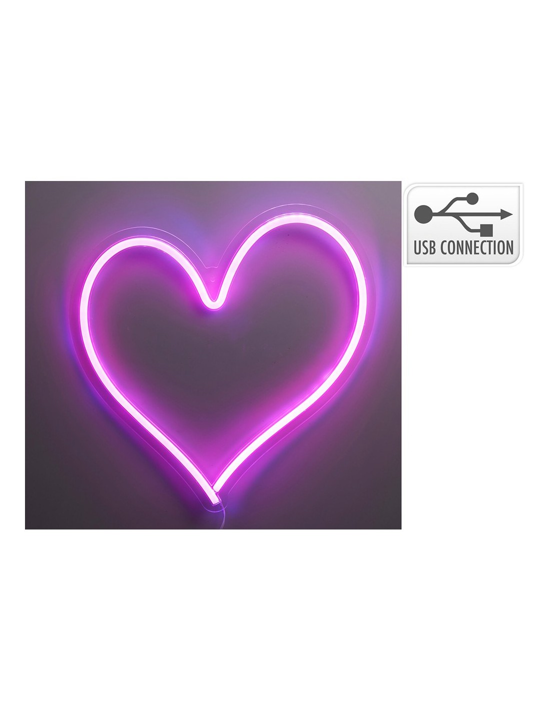 Luz led de neón decorativa en forma de corazón, marco de ps, tira fv, cobre, led de color - usb con interruptor de encendido/apagado, cable blanco de 2 m - para interior dimensiones: 32 x 34 cm