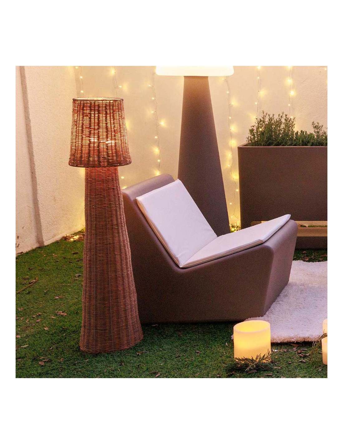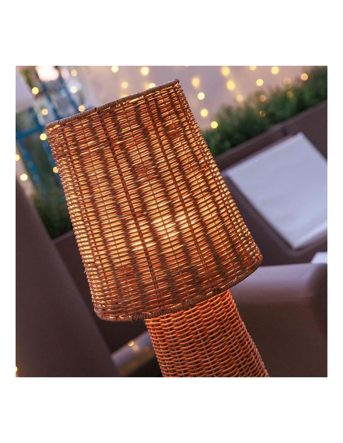 Lámpara de pie, lola 110 nature. fabricada a mano con fibras naturales trenzadas. incorpora bombilla portátil recargable cherry ip54 de luz cálida que no requiere instalación. se adhiere mediante su base imantada o se puede colgar gracias al gancho de sujeción integrado. incluye mando a distancia con alcance de 3 m para poder encender, apagar y regular su intensidad. autonomía de 6 a 20 h. carga con cable usb-c incluido. dimensiones: ø25 x 109 cm