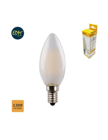 BOMBILLA VELA FILAMENTO LED E14 4W 400 LM 3200K LUZ CALIDA EDM