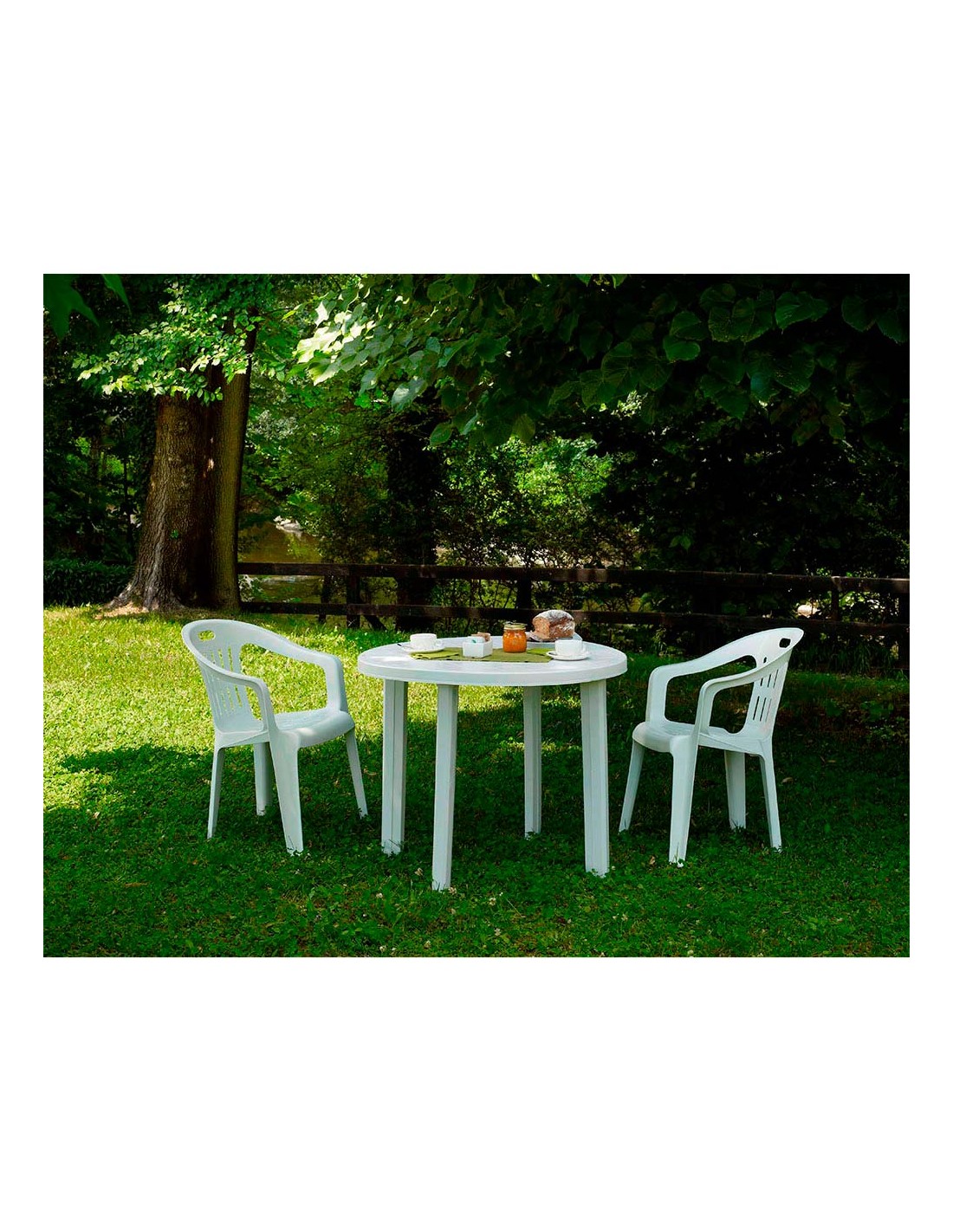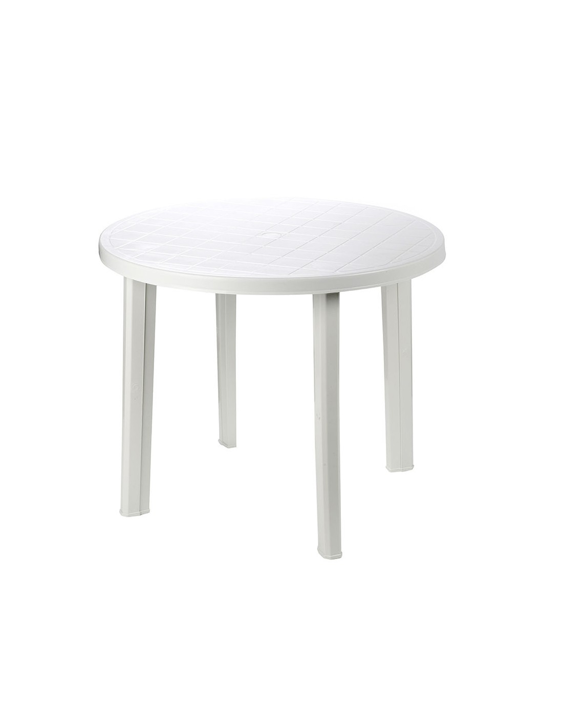 Mesa redonda para exterior. color: blanco ø90x72cm (diámetro/alto) modelo: tondo. peso: 6,3kg. fabricada con resina. diametro del agujero: ø38mm ipae progarden. sólo para uso doméstico.