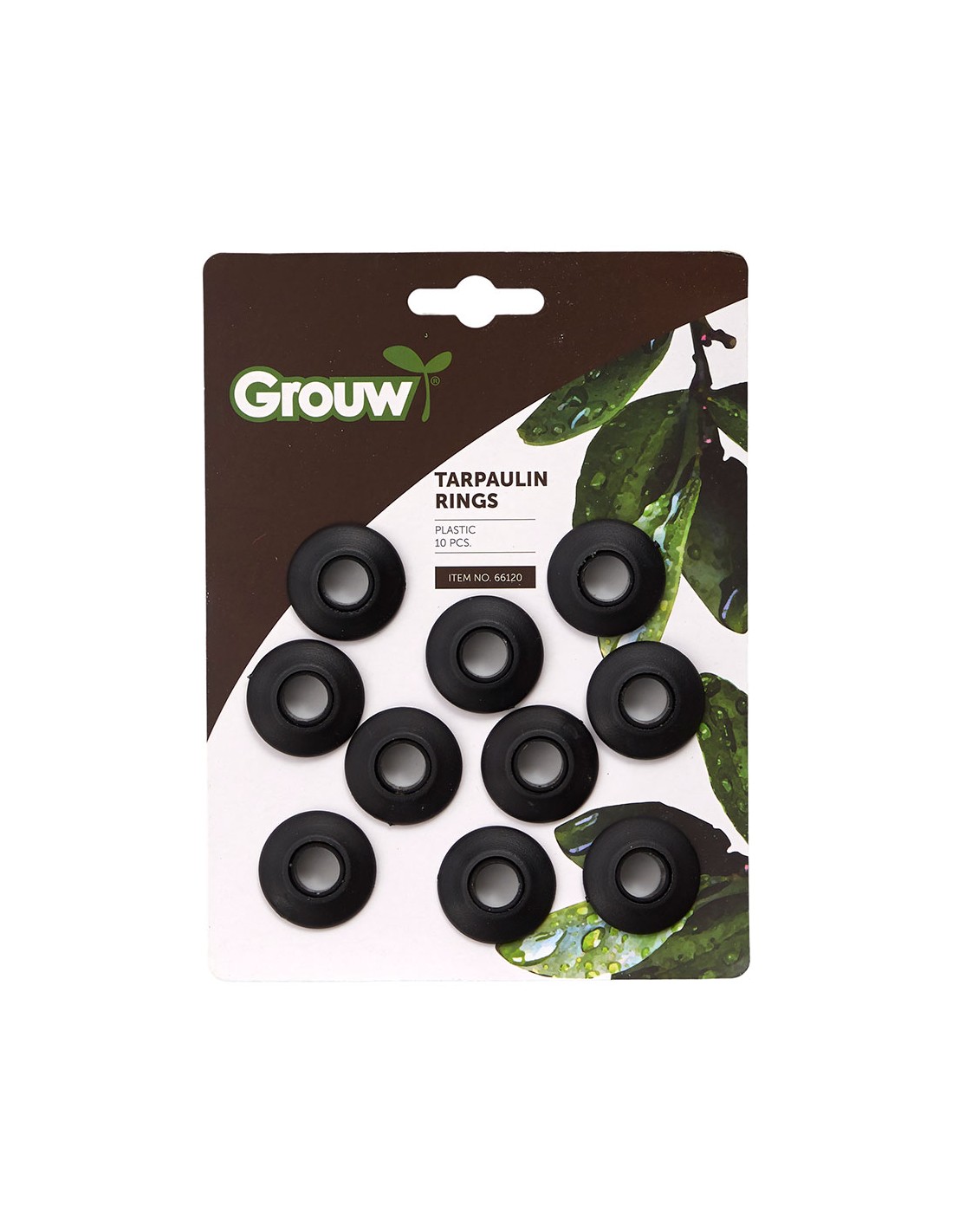 Conjunto de 10 anillas de plástico para toldos y lonas. medida: ø2,8 x 0,7 cm. color negro