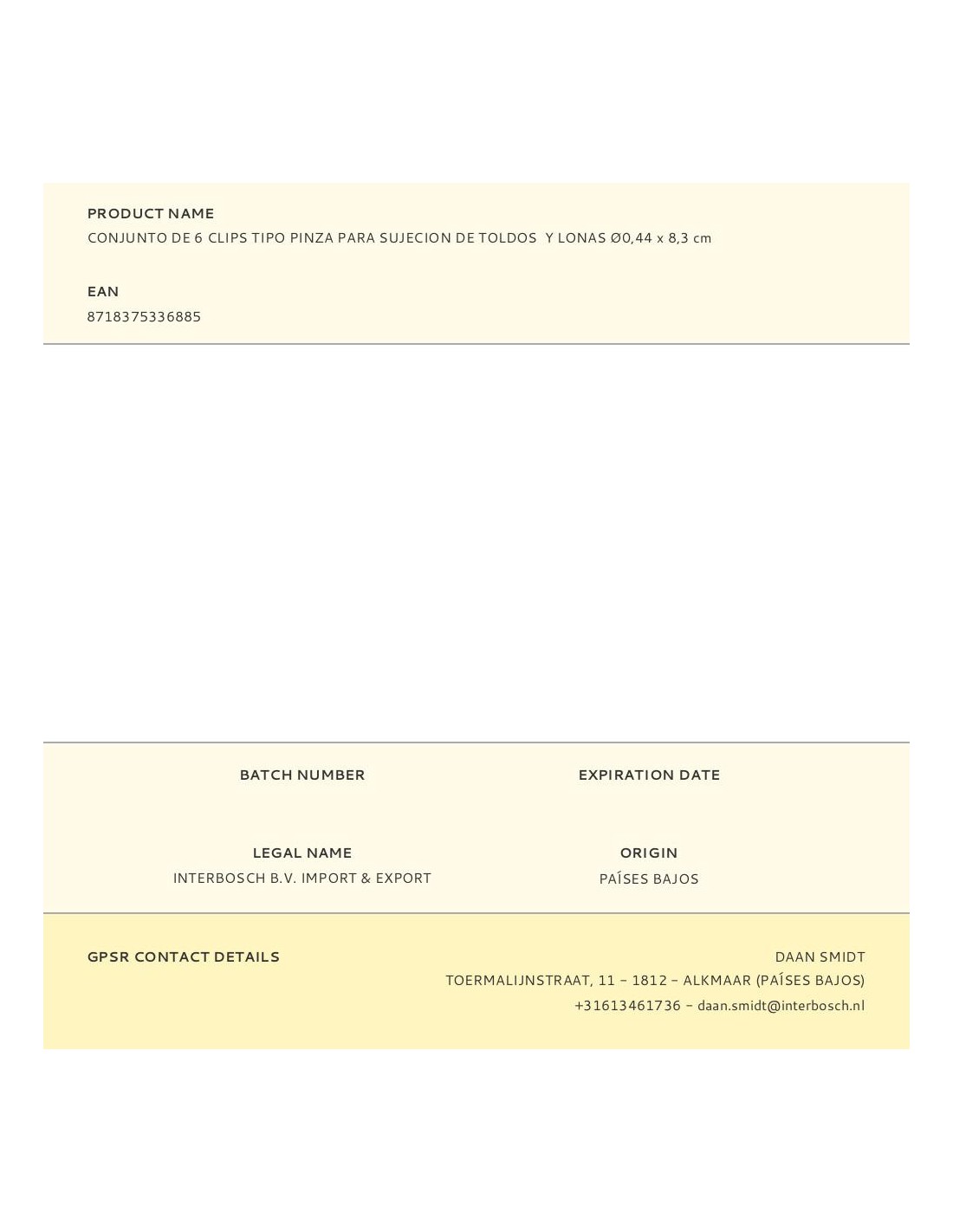 Conjunto de 6 clips tipo pinza para sujecion de toldos y lonas. medida: ø0,44x8,3cm (diámetro/largo). color azul. material pvc. benson